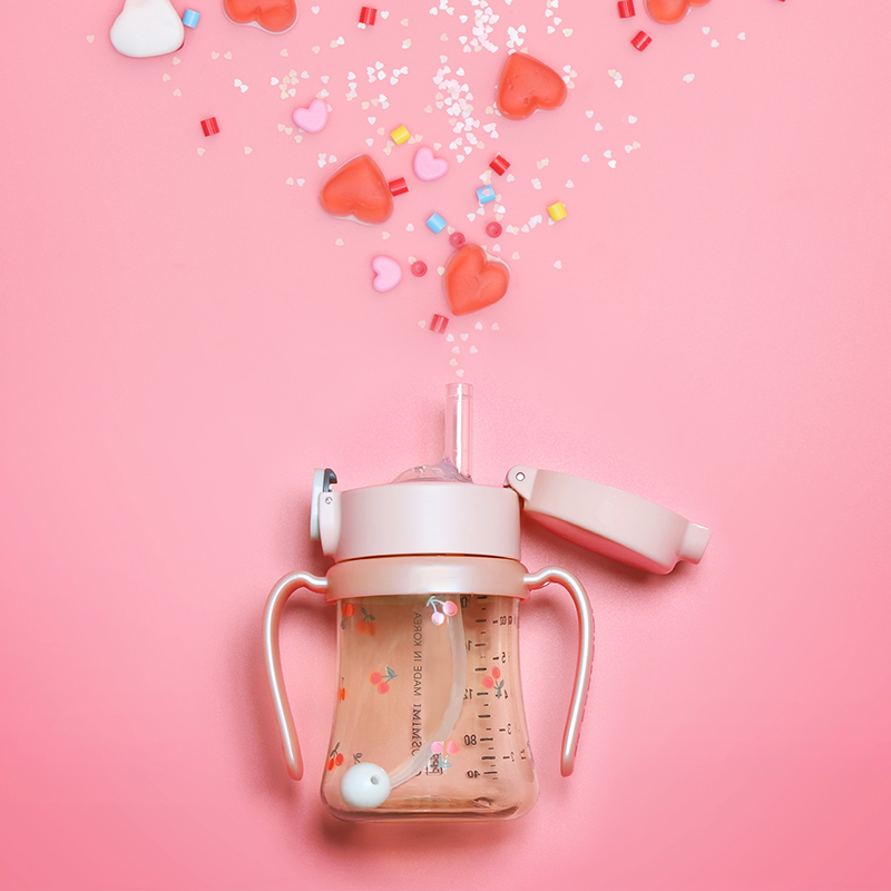 Grosmimi straw cup Grosmimi Cherry gravity ball drinking cup Baby baby children learn to drink milk bottle