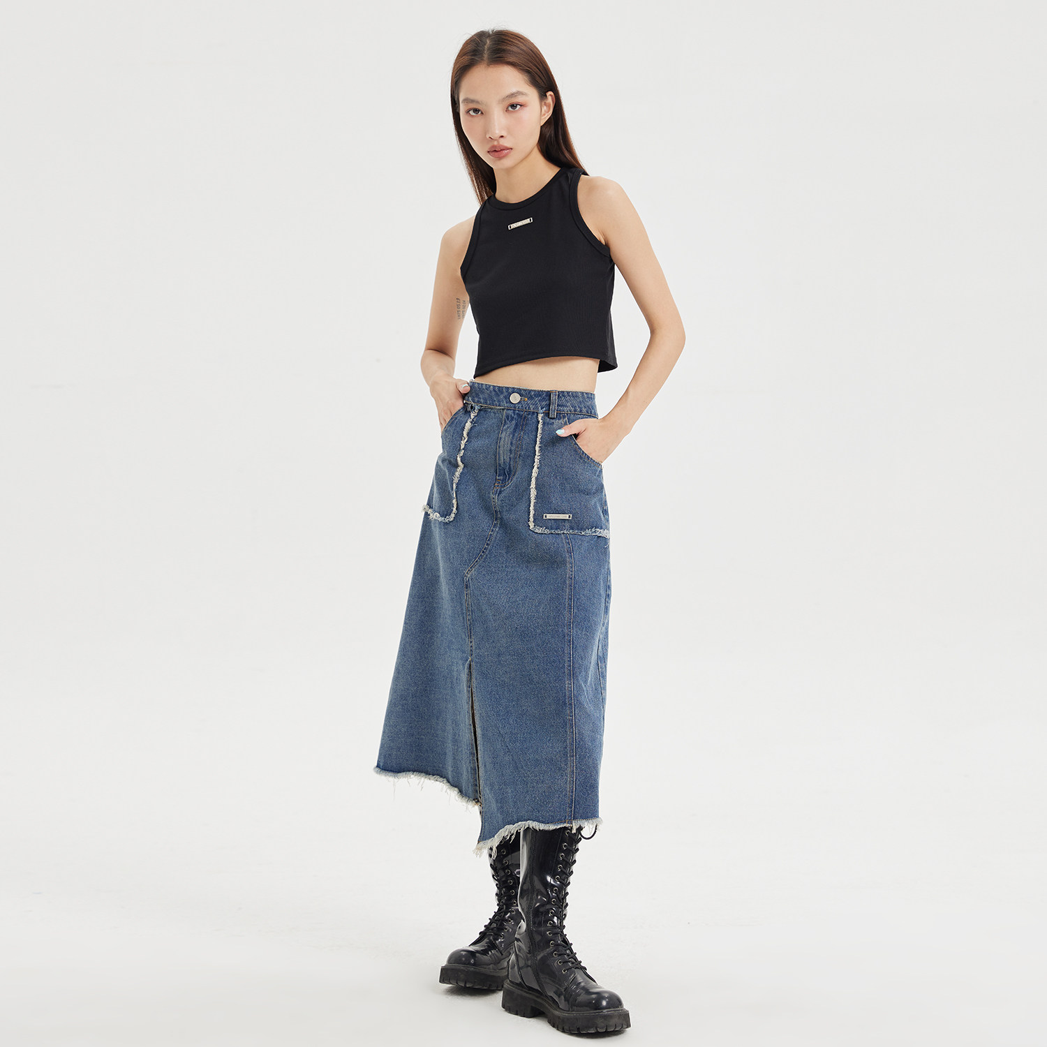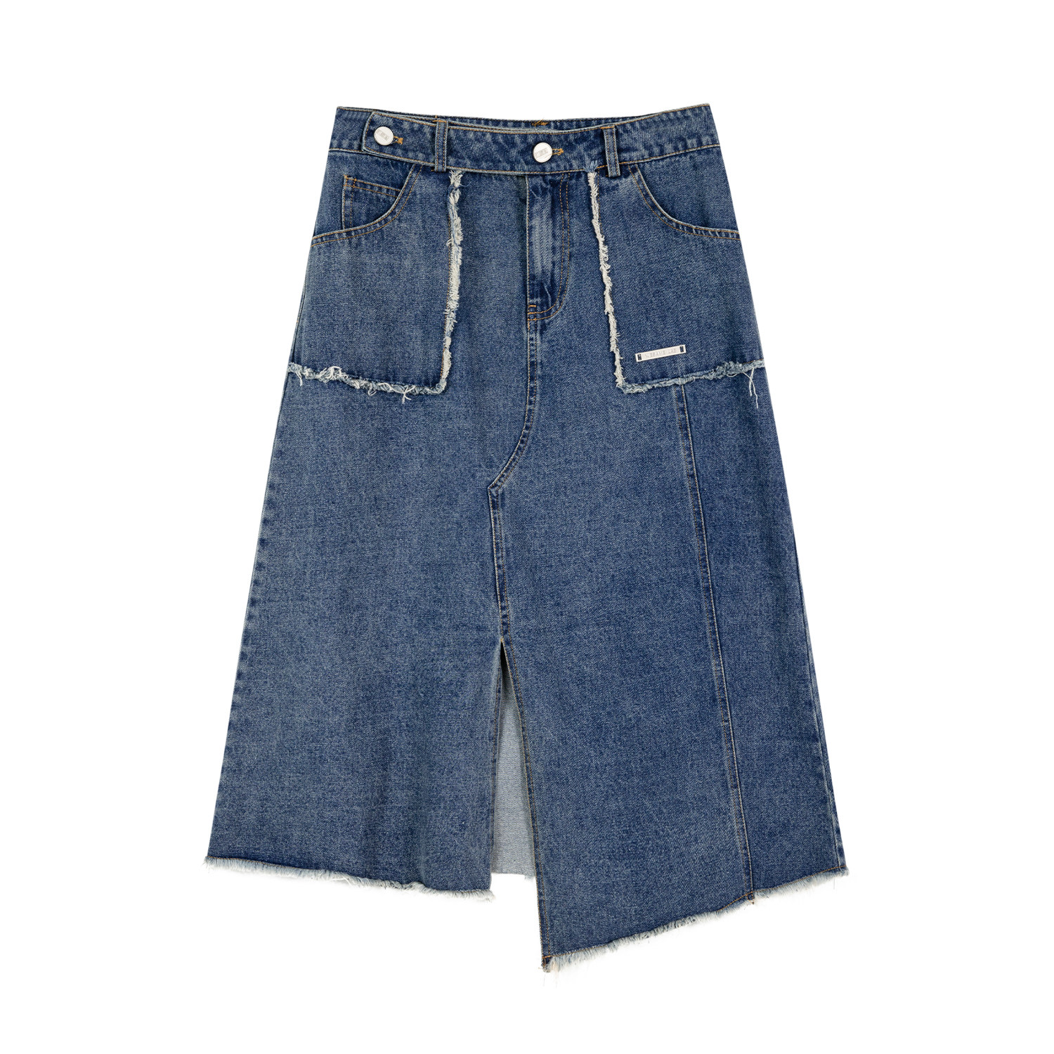 WESAME LAB niche original design retro raw skirt women's stitching mid-length slit denim skirt