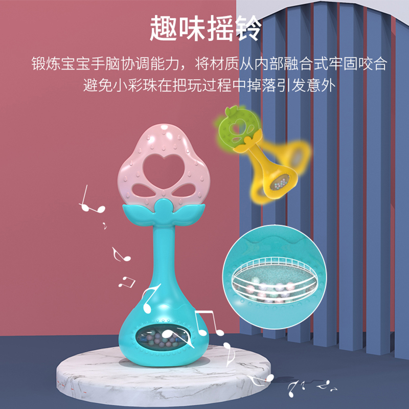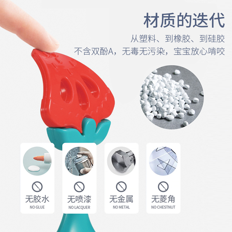 Baby hand rocking bells solid teeth Teeth Grinders Children Strawberry water cooking grinders for 0-6-12 months Silicone Fruit Tooth Bite