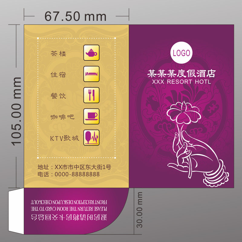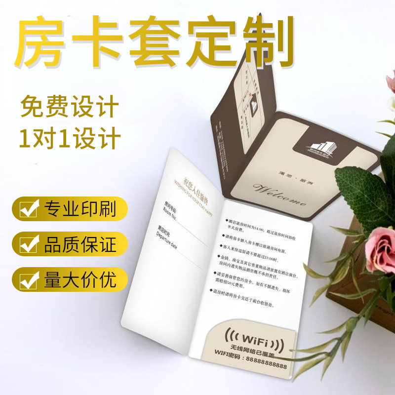 Room card set custom seven-day hotel hotel room card key set design Home Jiahua apartment business club door card paper set printing bronzing logo pocket half-fold red envelope room card bag universal