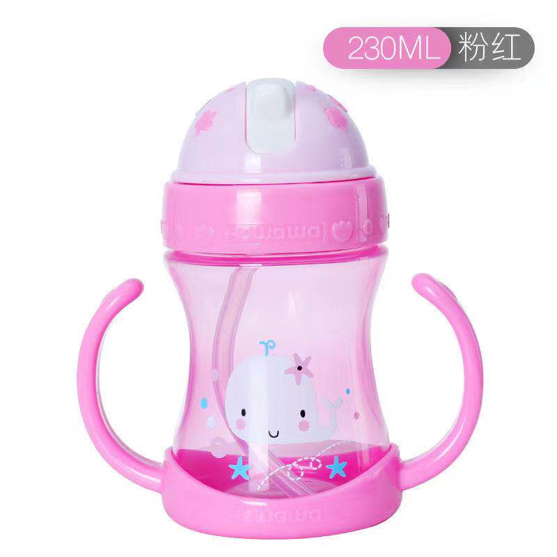 Good doll water cup straw cup baby learning drinking cup plastic drinking cup dual-use anti-choking with handle children straw cup