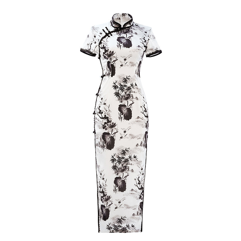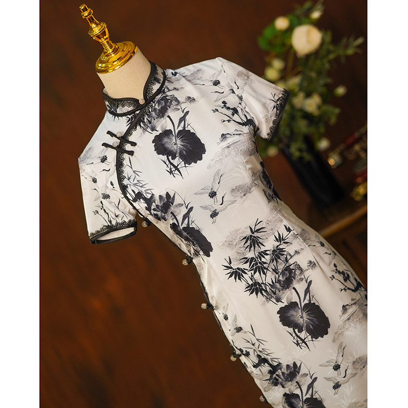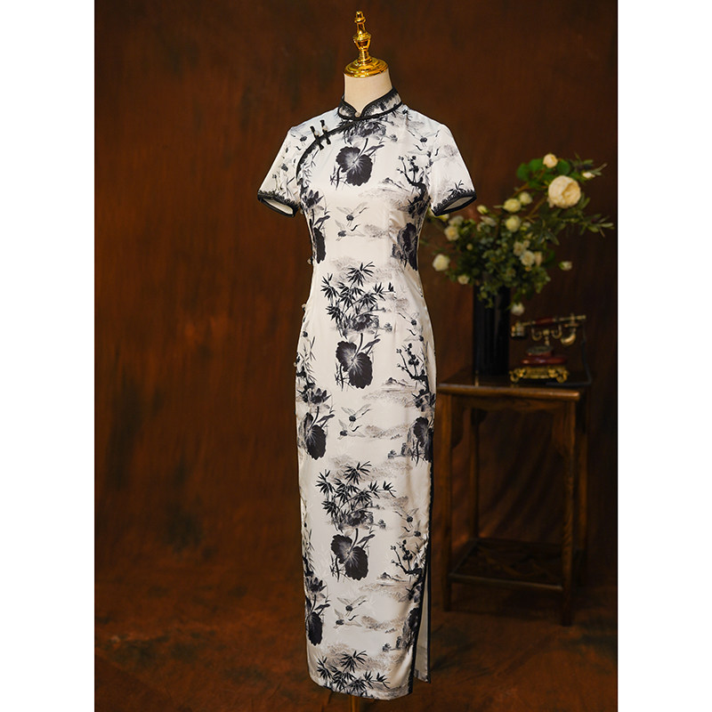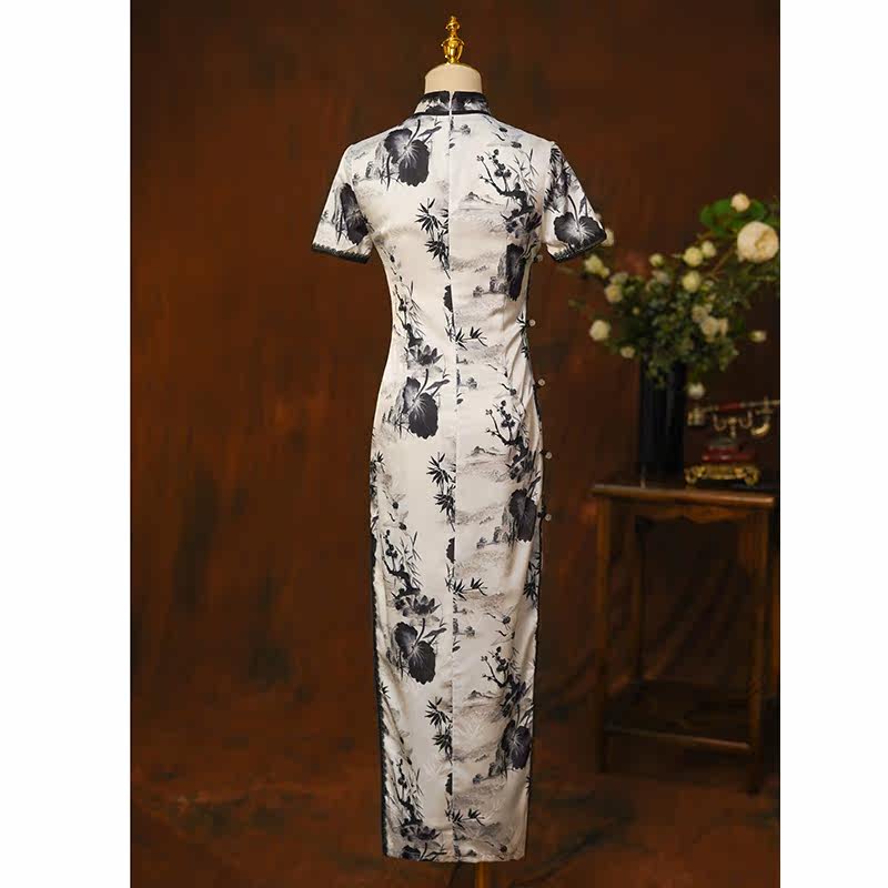 Retro qipao 2022 The new mother improved the traditional long version of the old Shanghai Suja printed women's spring