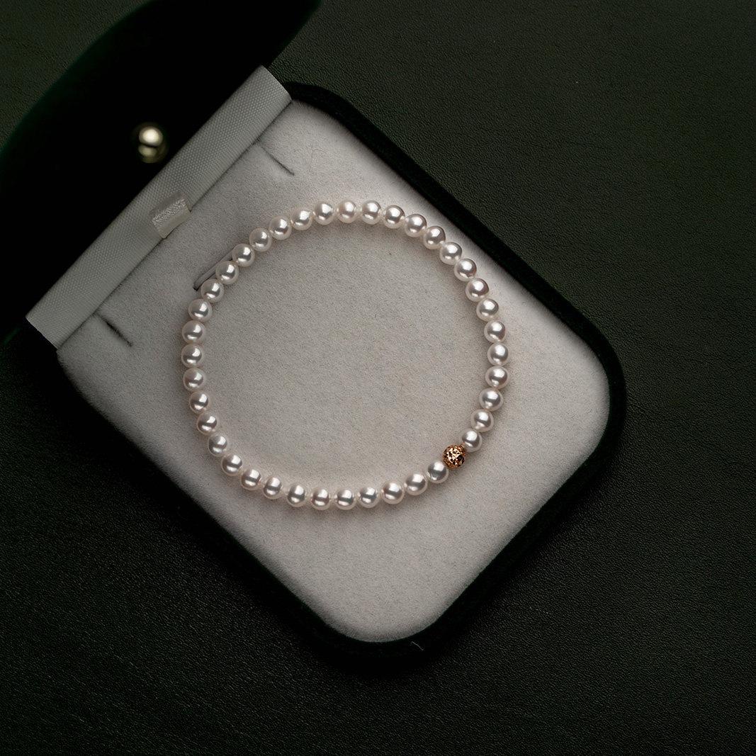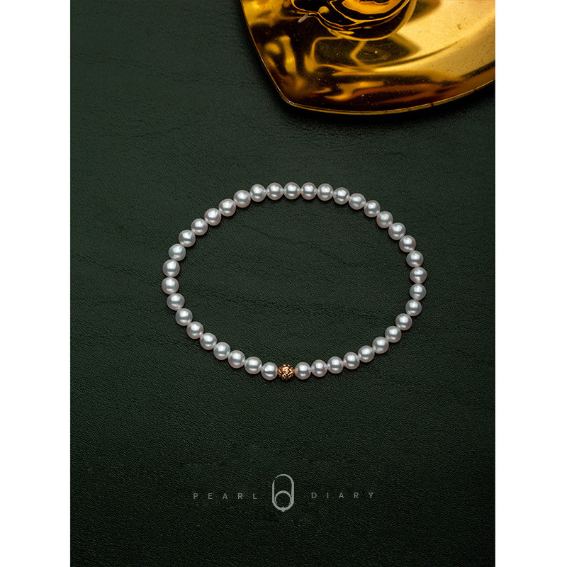 Pearl log 18k gold akoya glossy baby pearl hand refined near positive round micro imperfections Social distance not visible