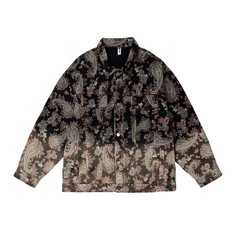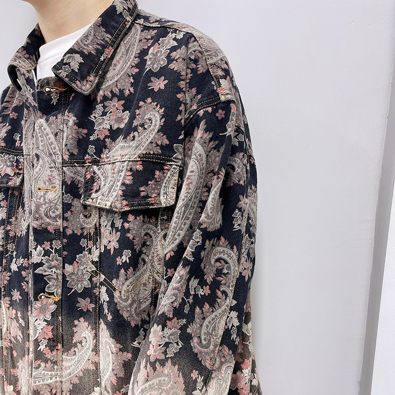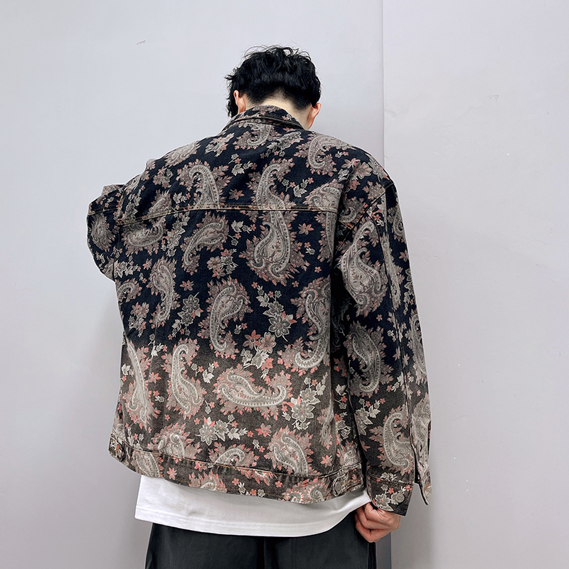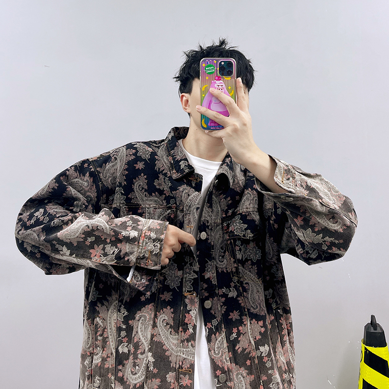PGUP STUDIO Autumn Heavy Industry Water Wash Gradual Layer Fitted Fruit Printing Layer Jacket Cocket Man