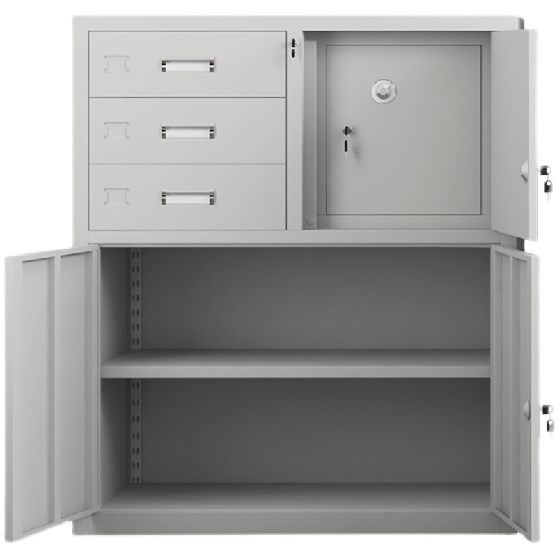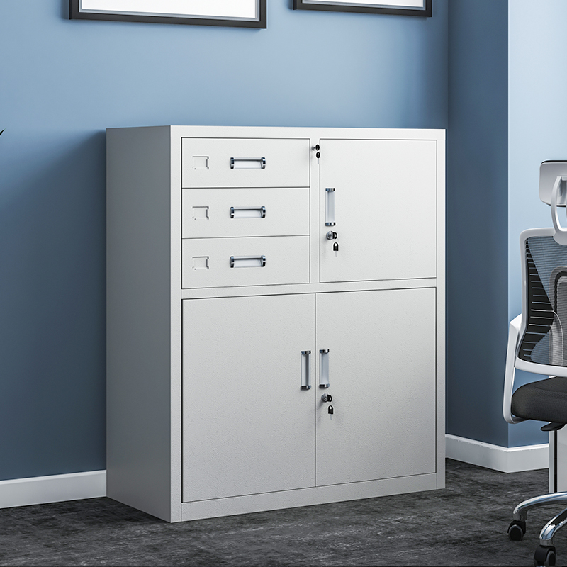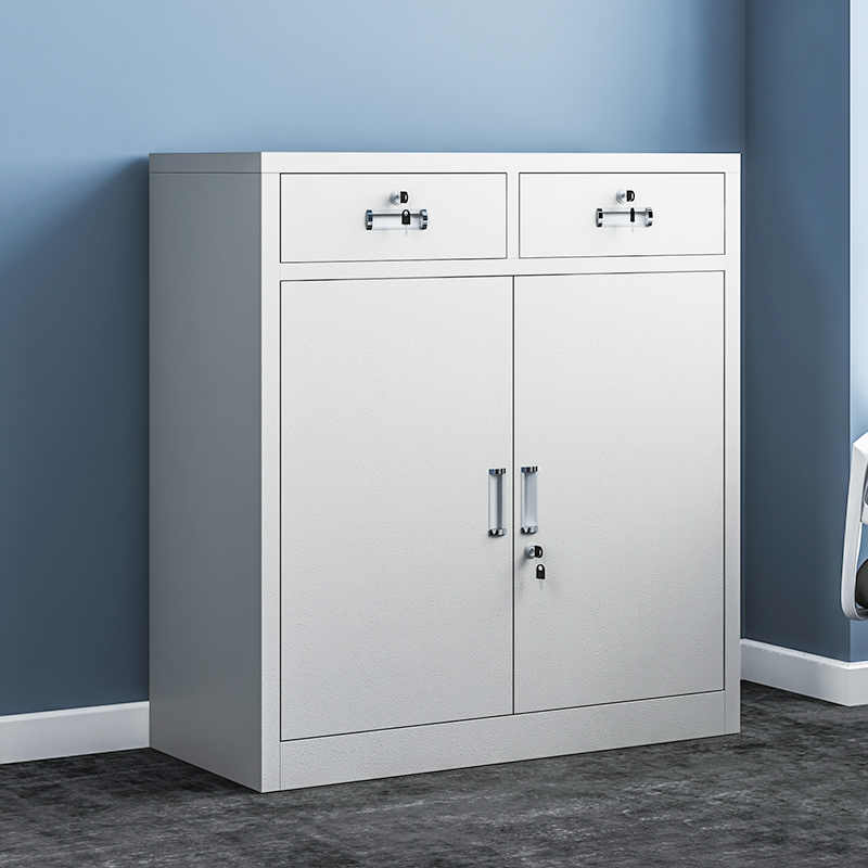 Low cabinet file cabinet middle two iron cabinet tea cabinet half-section multi-layer drawer with lock to open the door tool information cabinet