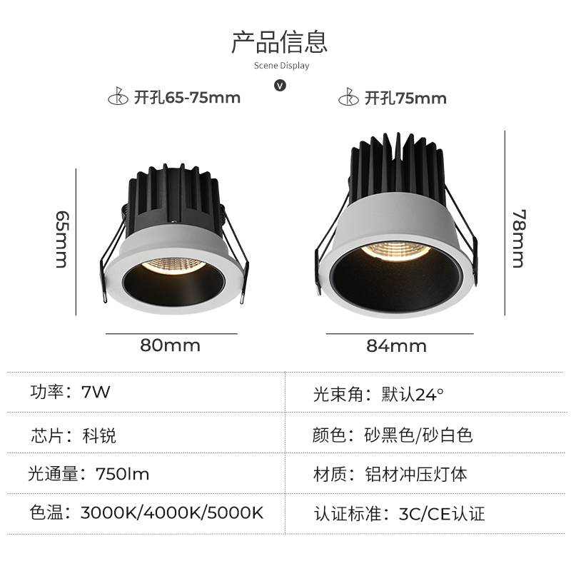 Narrow side-7W-Warm light 3000K Narrow side-7W-Neutral light 4000K Narrow side-7W-White light 5000K Wide side-7W-Warm light 3000K Wide side-