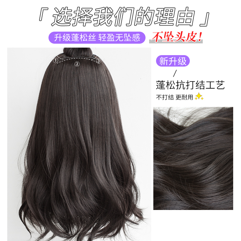 Curly hair wig sheet Three-piece hair growth fluffy large wave emulated wig female long hair Invisible pick up patch summer