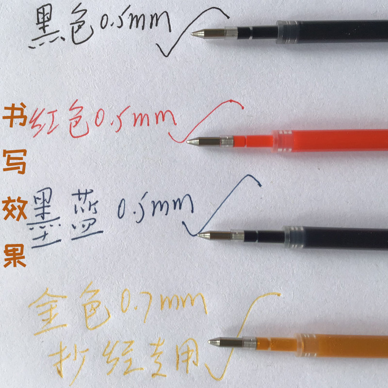 Press neutral pen core 0 5mm black red nurse ink blue water pen core copied through 0 7mm gold core