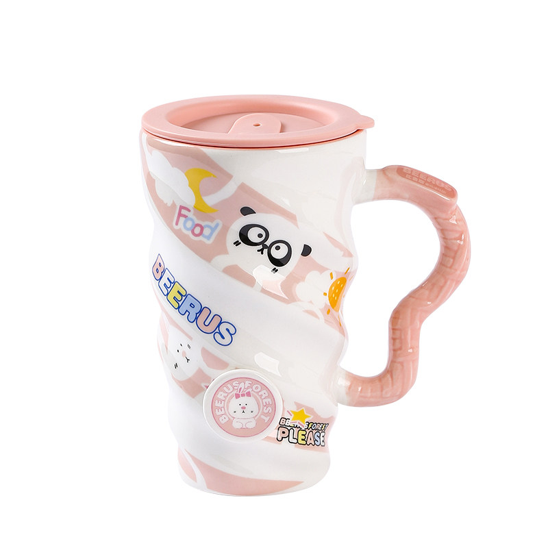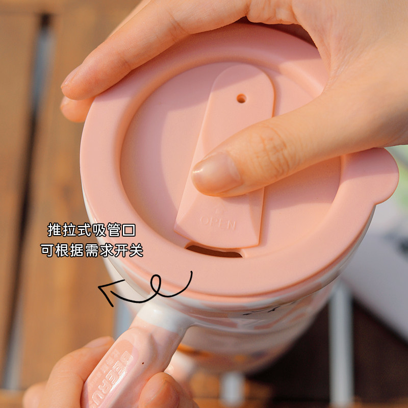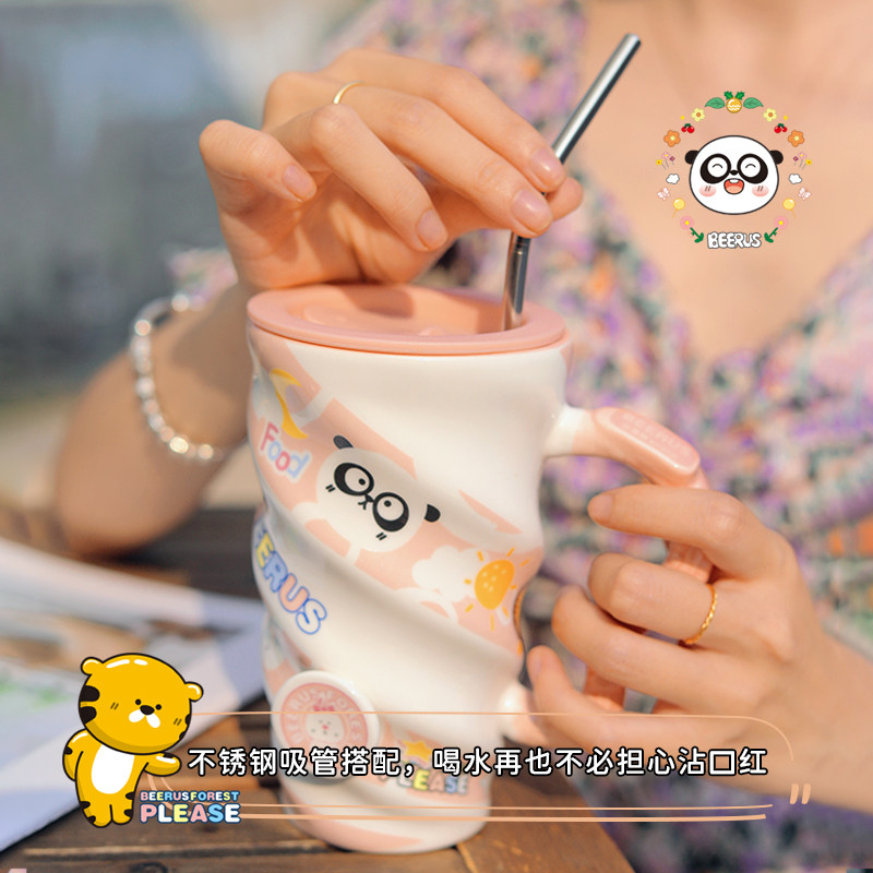 Cute mug girls couple water cup with lid cup female summer ceramic couple breakfast cup large capacity