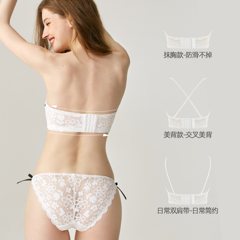 Miss Curious sexy French lace strapless underwear female tube top thin section bra without rims