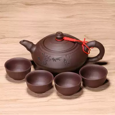 Purple mud bayonet portraying Xi Shi 420 ml big ball hole 2 famous Cup with certificate set of cement bamboo joint 300 ml send 4 famous cup set of purple mud bamboo joint 300 ml send 4