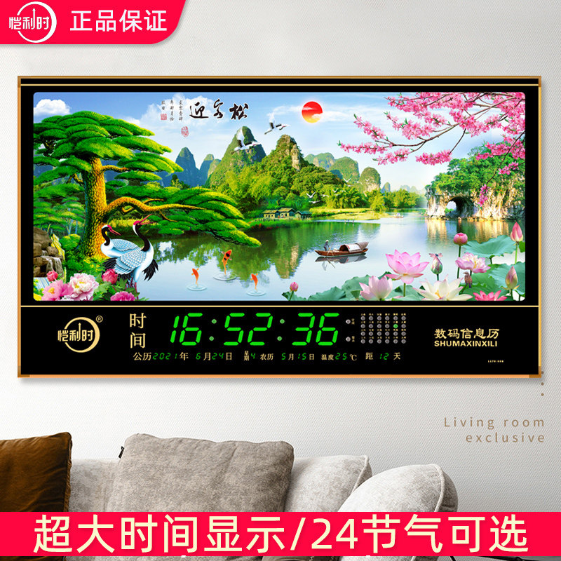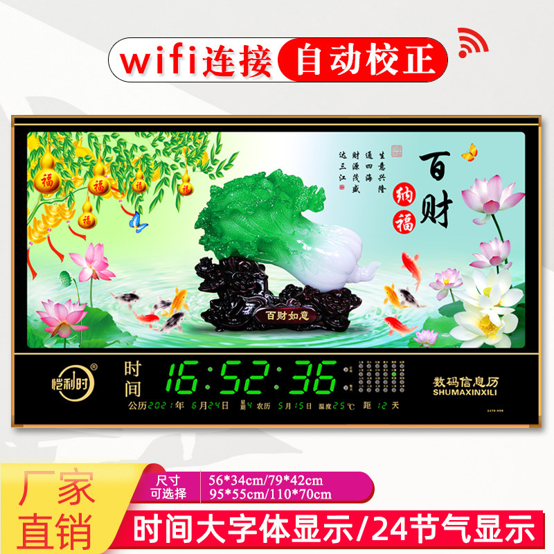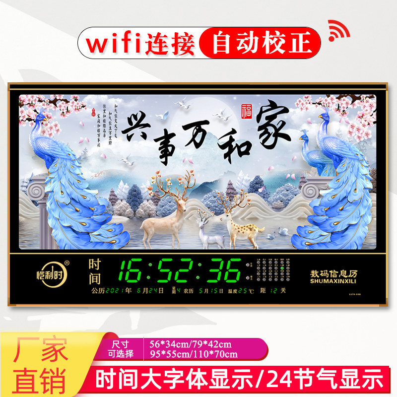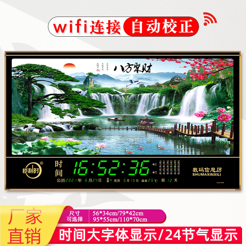 Khaley's time WIFI's new perpetual calendar electronic clock home living room hanging wall clock brief silent digital hanging clock