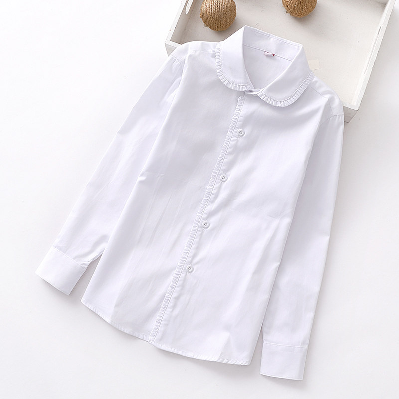 College Wind Girls pure cotton white shirt Spring and autumn long sleeves Primary school uniforms CUHK Tong's white shirt performance