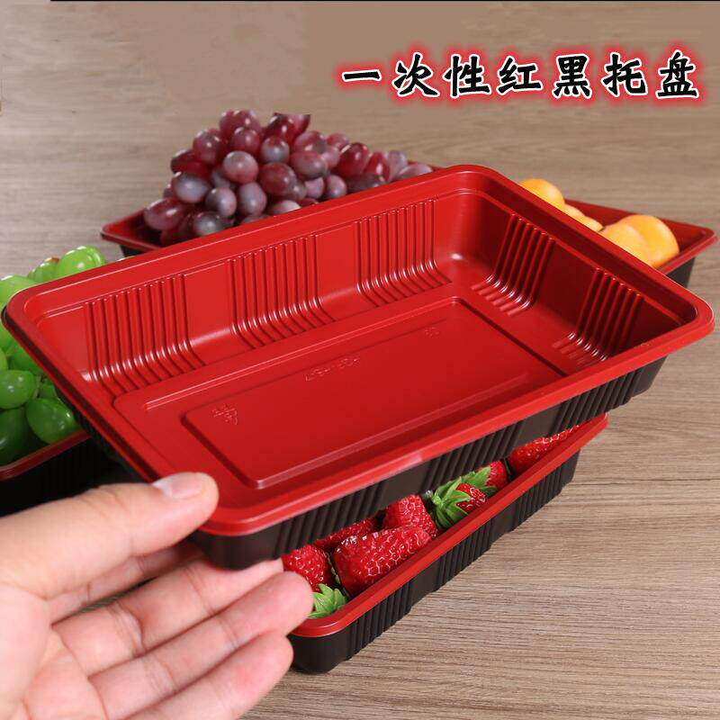 Disposable fresh meat tray red and black plastic fruit packing box can be frozen durian vegetable rectangular packing box