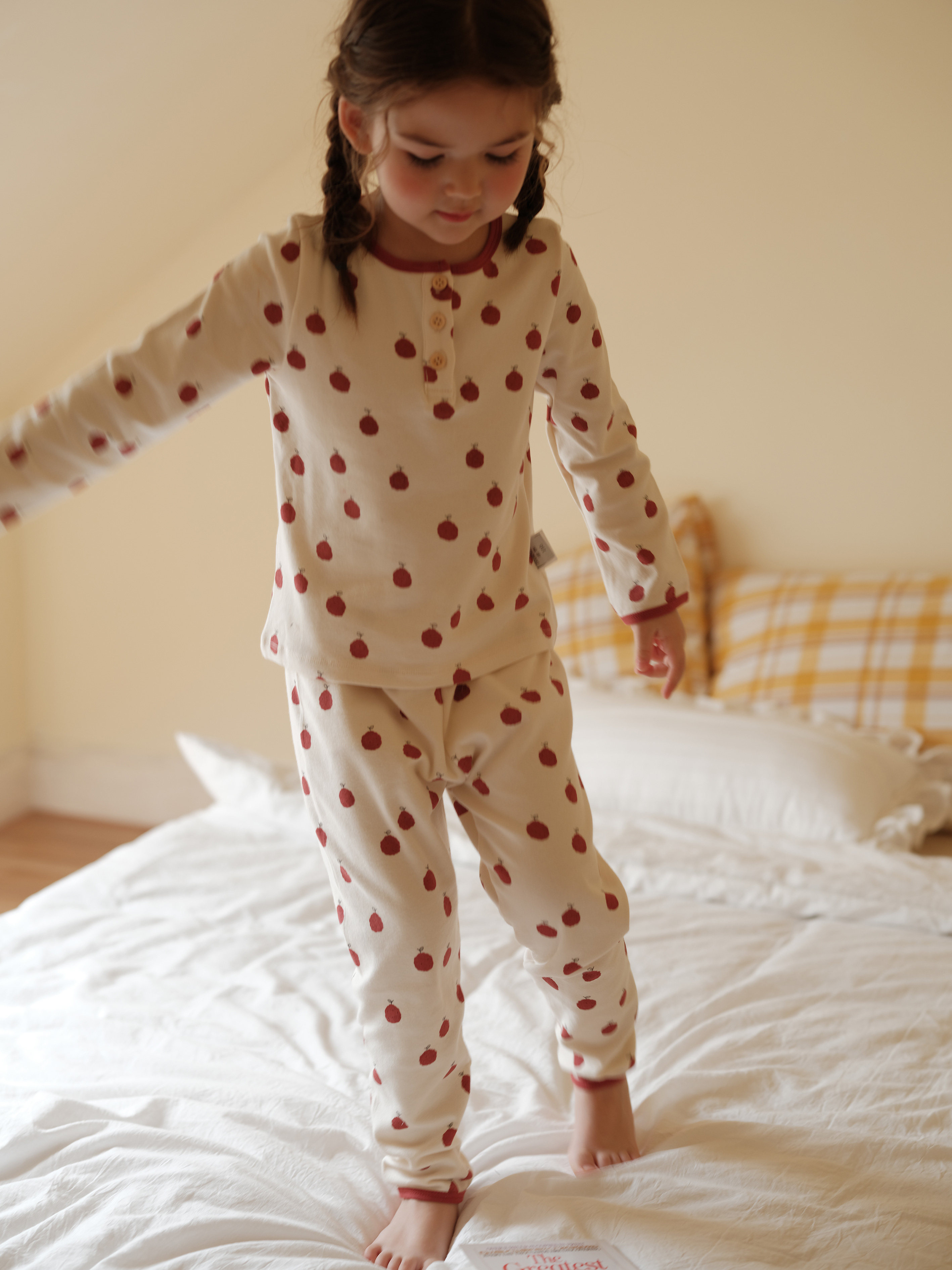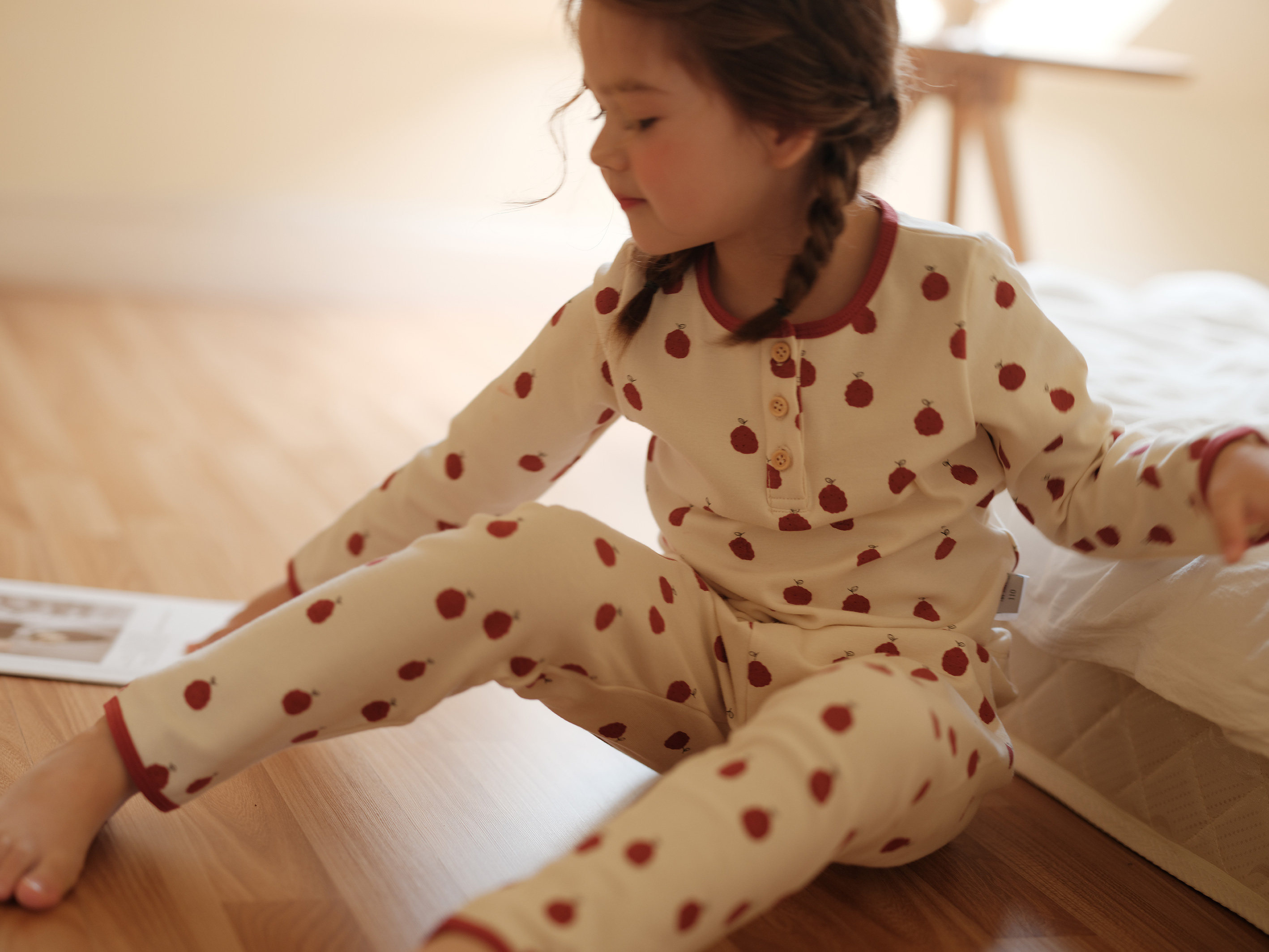 Chuxu original small red fruit print autumn and winter baby homewear suit combed cotton children's pajamas base coat winter