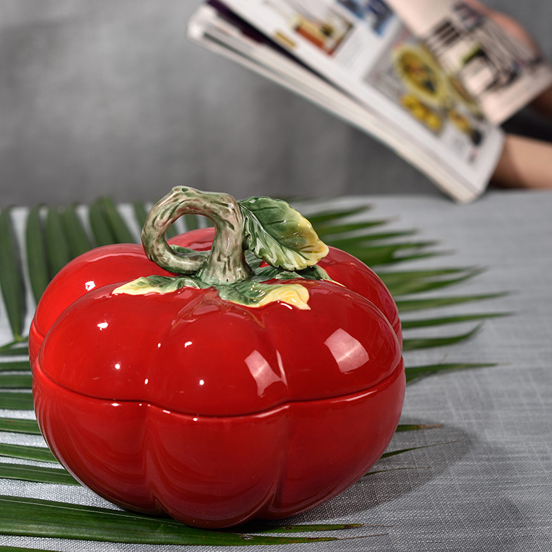 Ceramic candy canned snack canned canned with lid dried fruit small jar tomato decorative decoration bowl