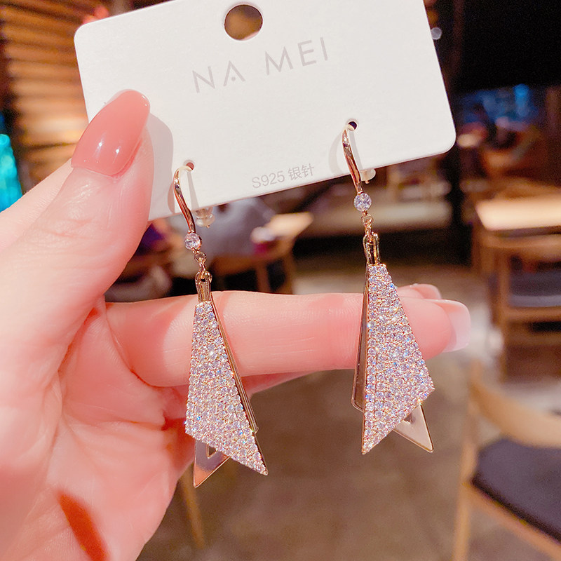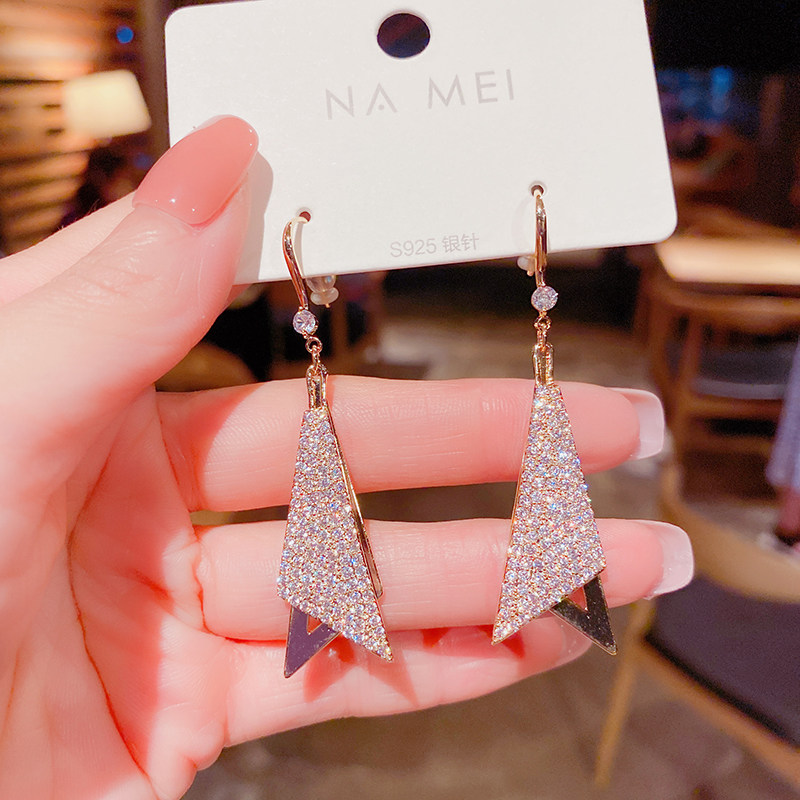 South Korea East Gate Full Drill Triangle Earrings Woman 2022 New Wave Temperament Net Red Superior Ear Hook Earrings Earrings Earrings
