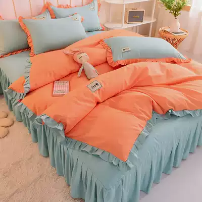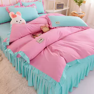 Korean ins girl heart princess style four-piece cotton bedding autumn and winter sheets quilt cover cotton bed skirt 4
