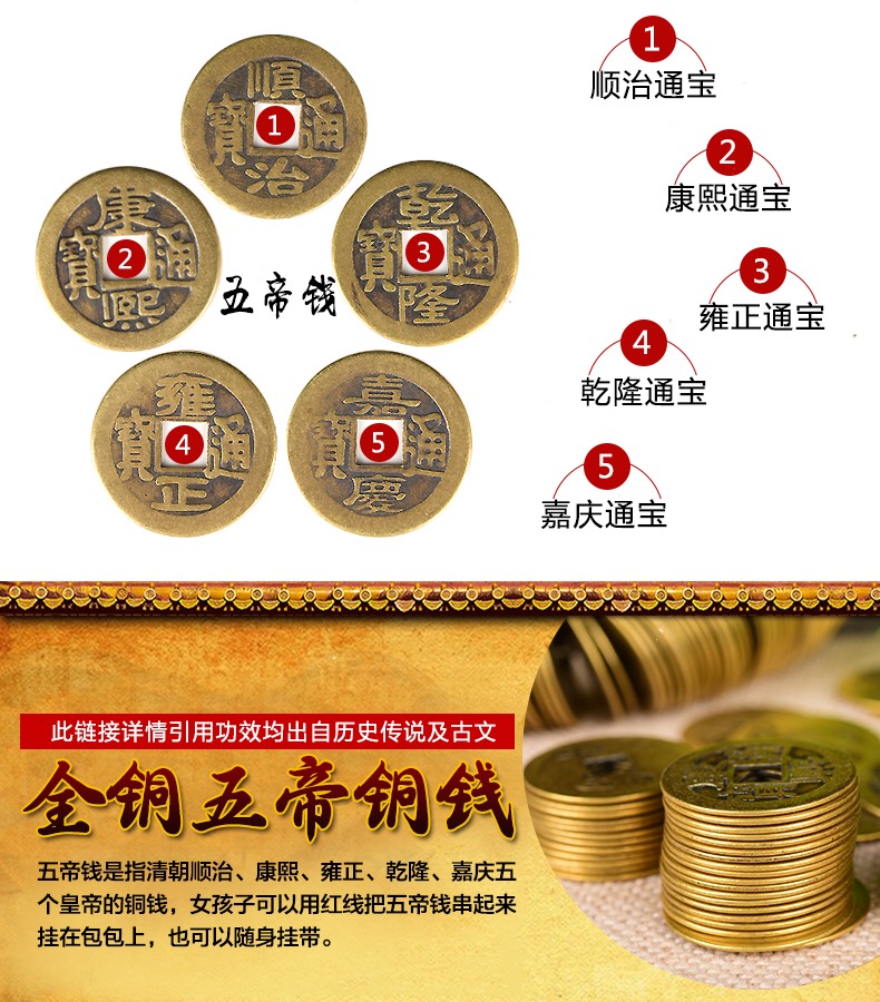 Pure copper five emperors money copper money to attract wealth into treasure ten emperors money ancient coins bulk antique pendant pressure threshold money pressure house beam