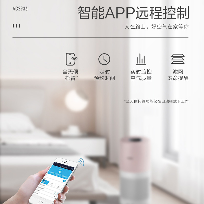 Philips Air Purifier Home Removal Formaldehyde Foggy Secondhand Smoke Office Bedroom Living Room AC2936