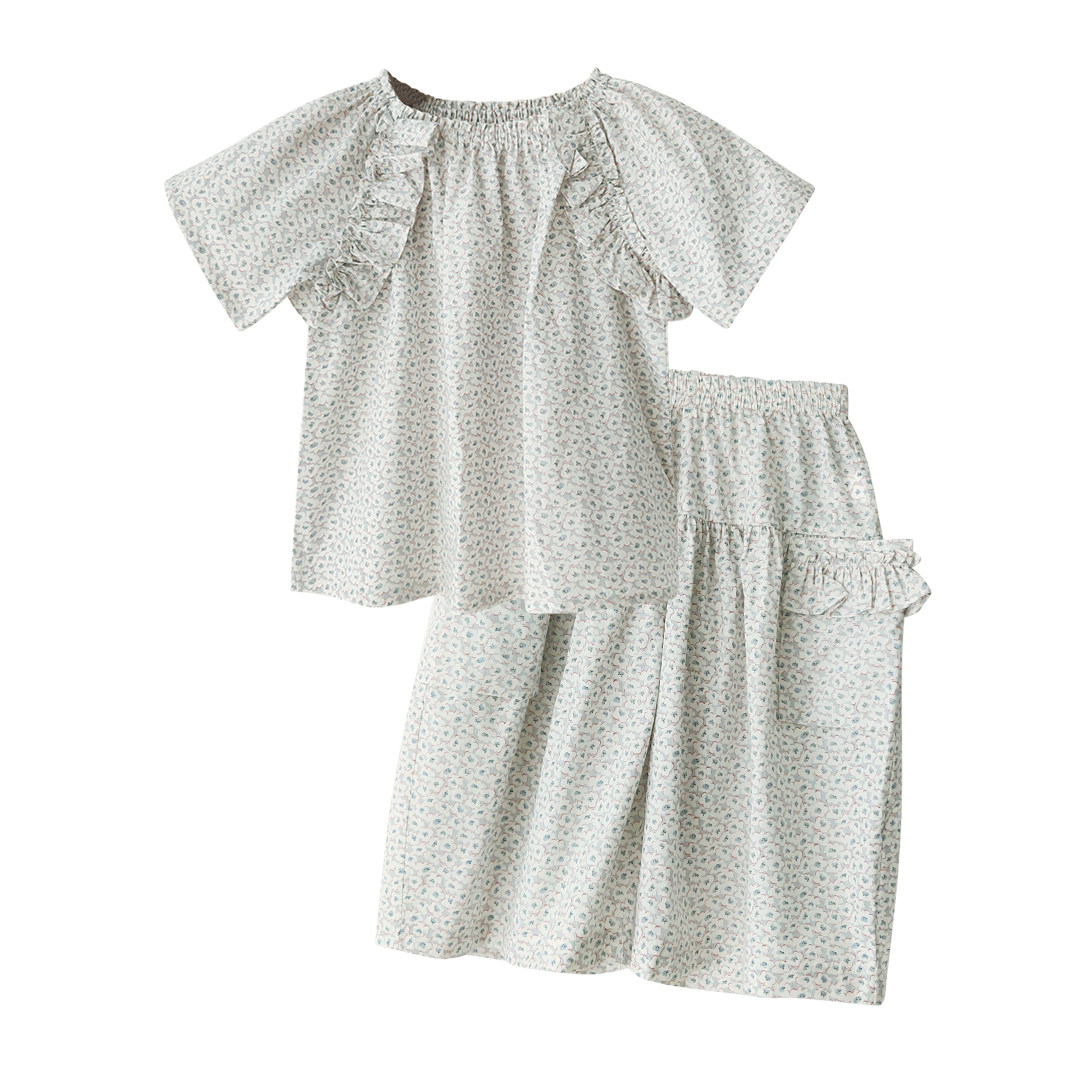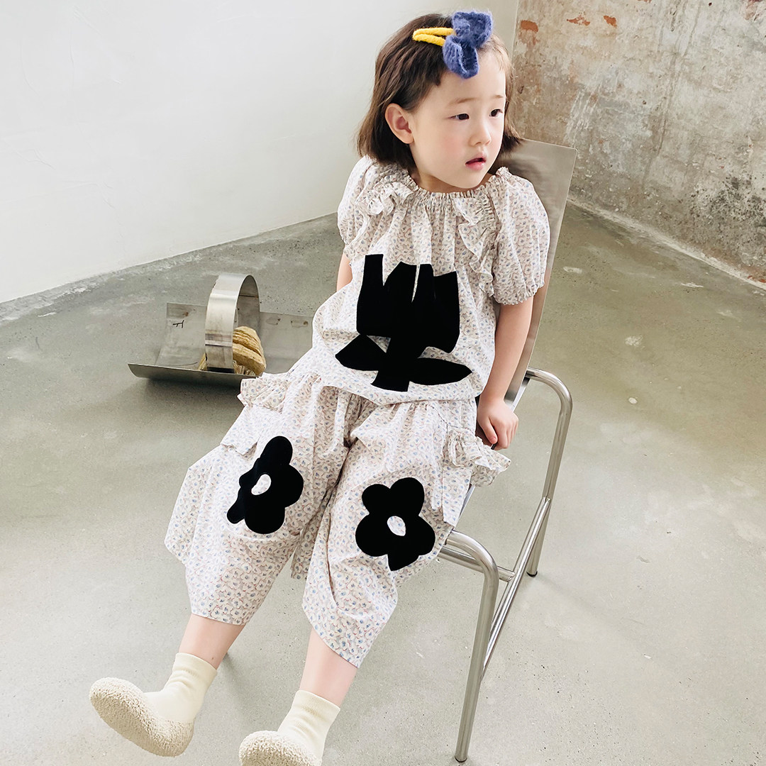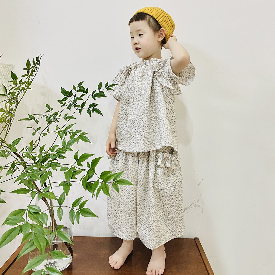 imakokoni girl two sets of broken flowers short sleeves blouses wide leg mosquito-proof pants 2021 new summer ladies 21694-Taobao