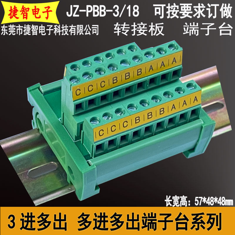 Power splitting wire box end Sub-table Three-in-out plus-plus public end power rail mounting JZ-PBB-3 18