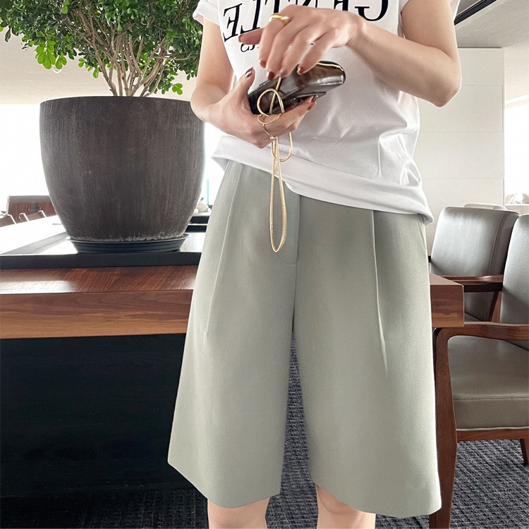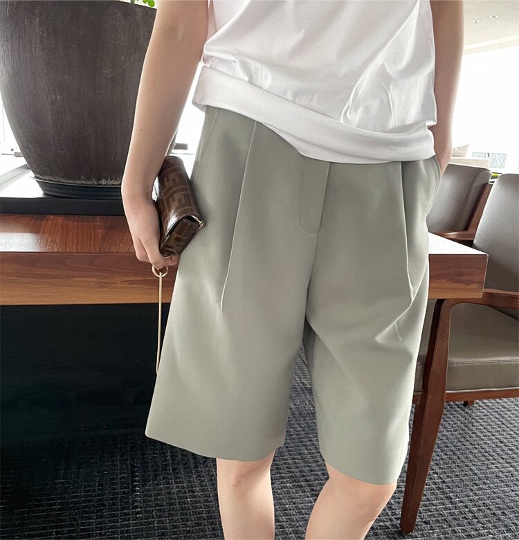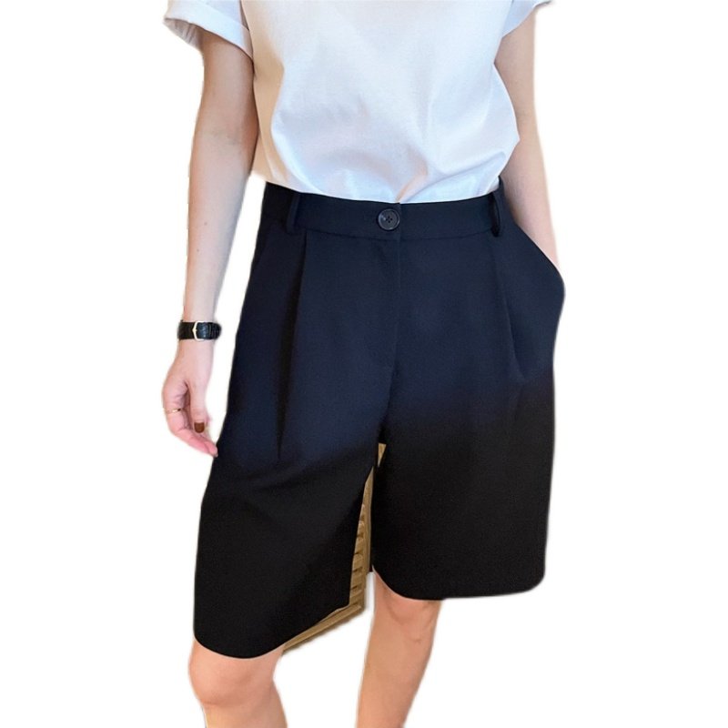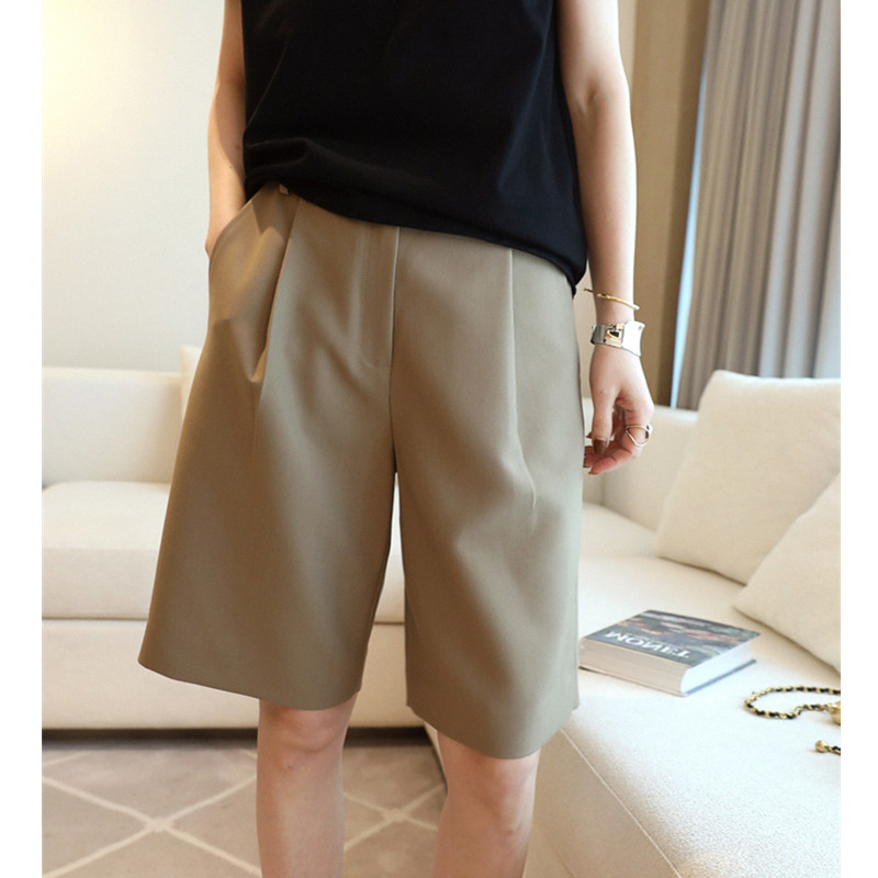 Large size slim and meat-covering suit shorts women's summer fat high waist loose khaki five-point pants pear-shaped figure mm