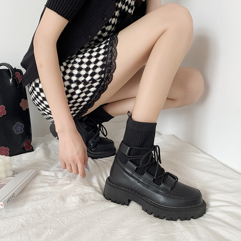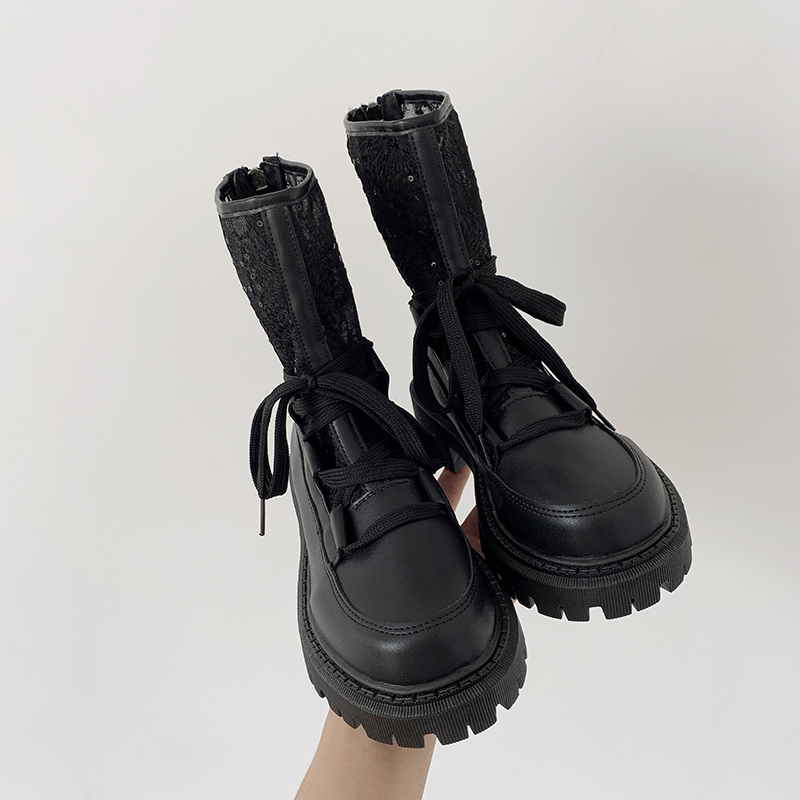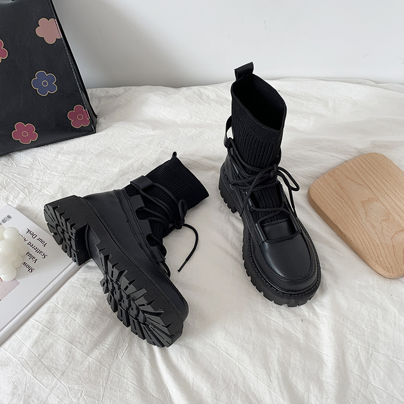 Martin boots women's summer thin British style 2021 new summer breathable lace-up knitted heightened thick-soled ankle boots
