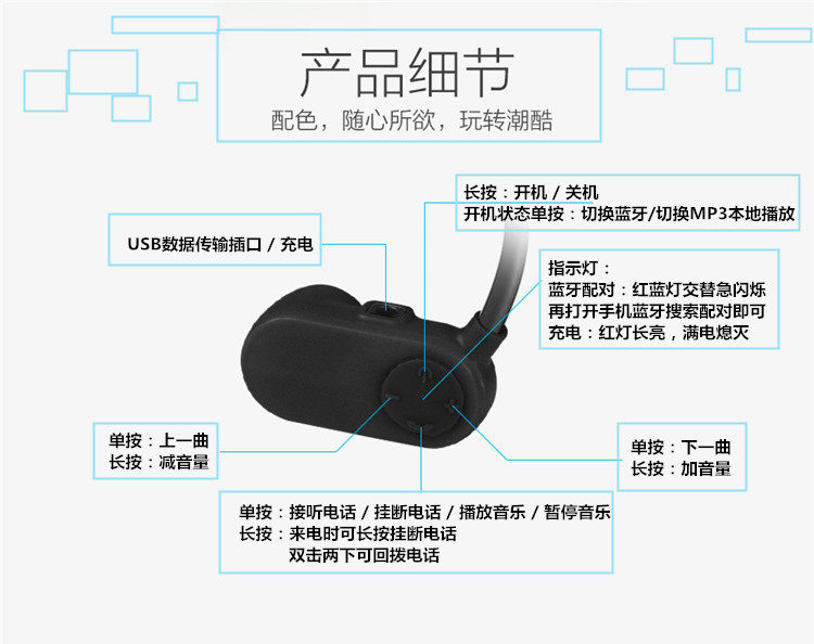 Black (head-mounted swimming single MP3 version) red (head-mounted swimming single MP3 version) yellow (head-mounted swimming single MP3 version) blue (head-mounted swimming single MP3 version) white (bone