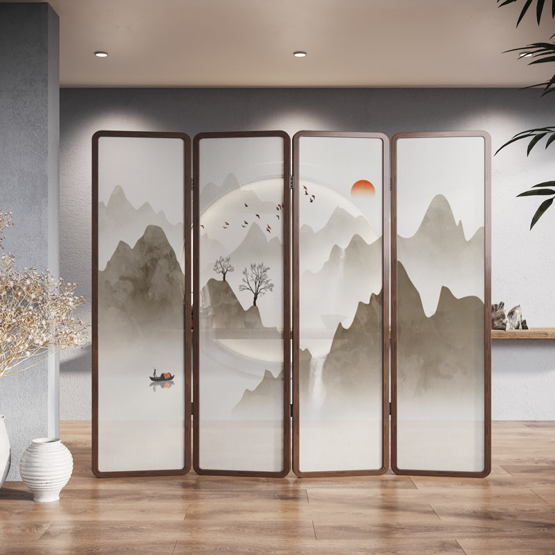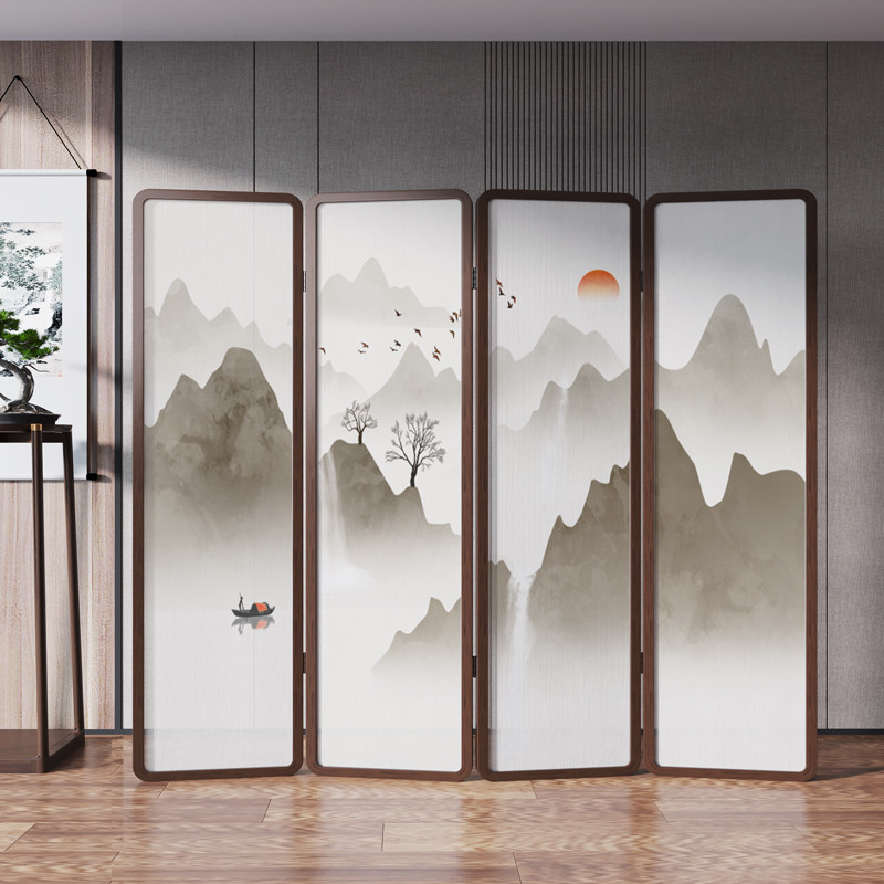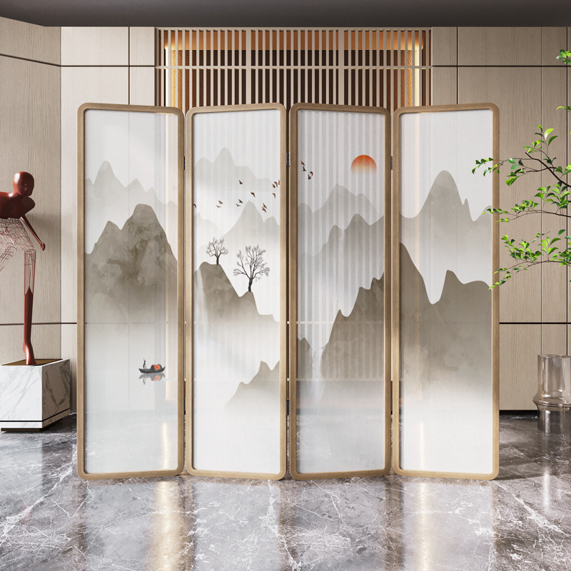 New Chinese style screen partition modern minimalist living room cover folding mobile bedroom office decoration solid wood folding screen