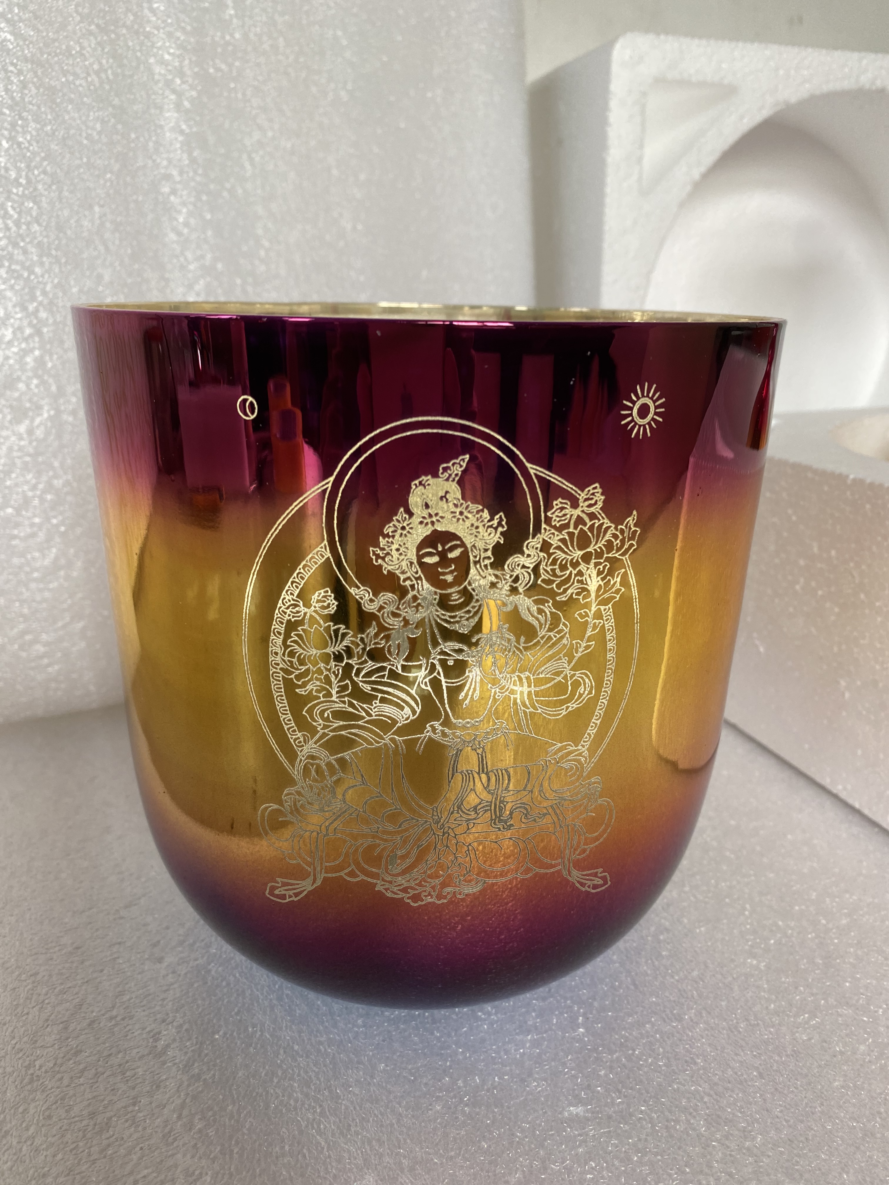 Gold color crystal bowl 8-inch flat-bottom bowl quartz crucible can bring any engraving three-step bass low frequency-Taobao