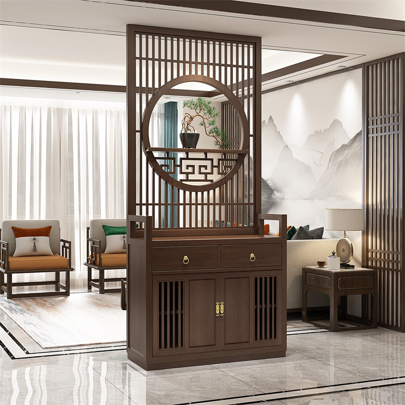 New Chinese simplified solid wood entrance screen partition living room home Xuaneng cabinet shielded flower lattice seat screen hollowed-out against wall