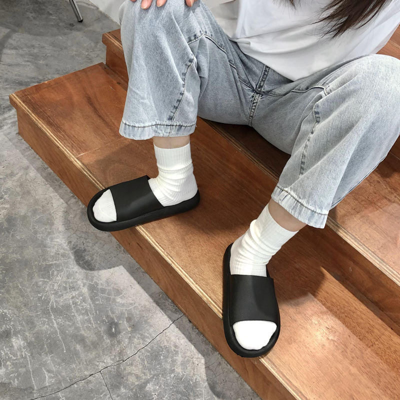 (Black) Solid Color Thick Sole Slippers (White) Solid Color Thick Sole Slippers Special Offer Thick Sole Fashion Slippers (Random Hair)
