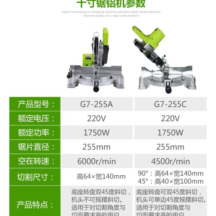 Pigeon G7 - 255A sawing machine 10 inches high power aluminum alloy aluminum cutting machine multi - functional sloping aluminum cutting machine