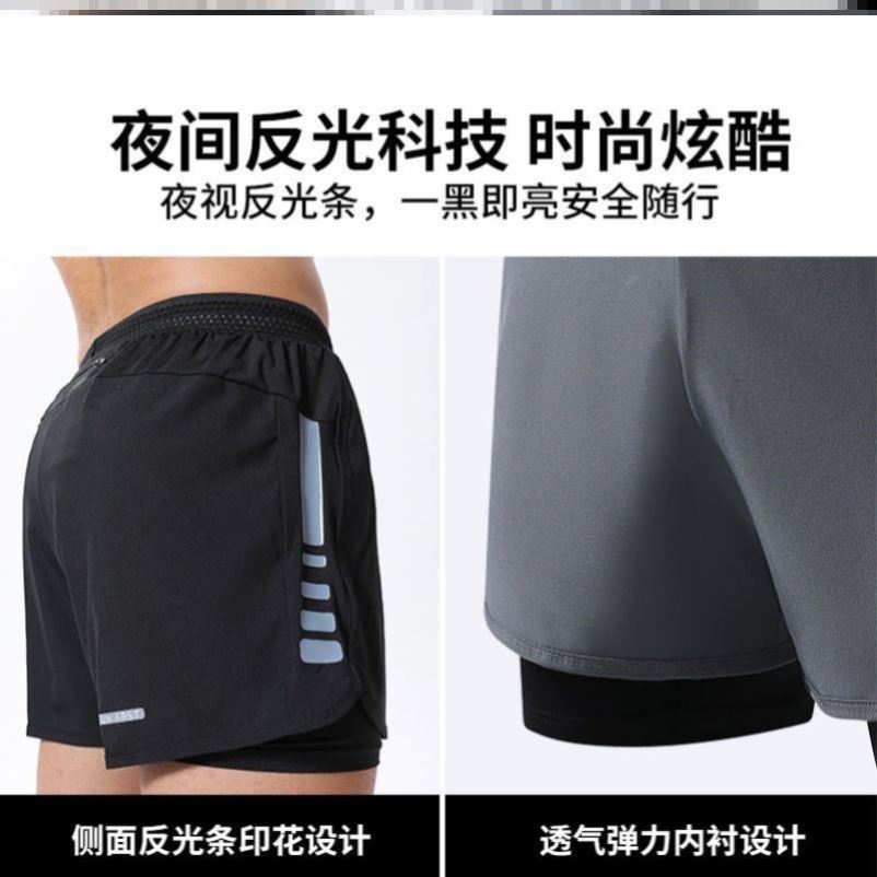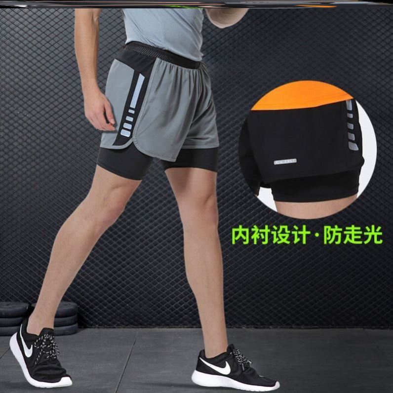 Men's running shorts can put mobile phone waist back pocket pocket two-in-one loose thin sports quick-drying pants high waist