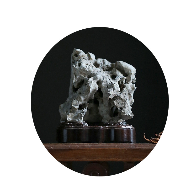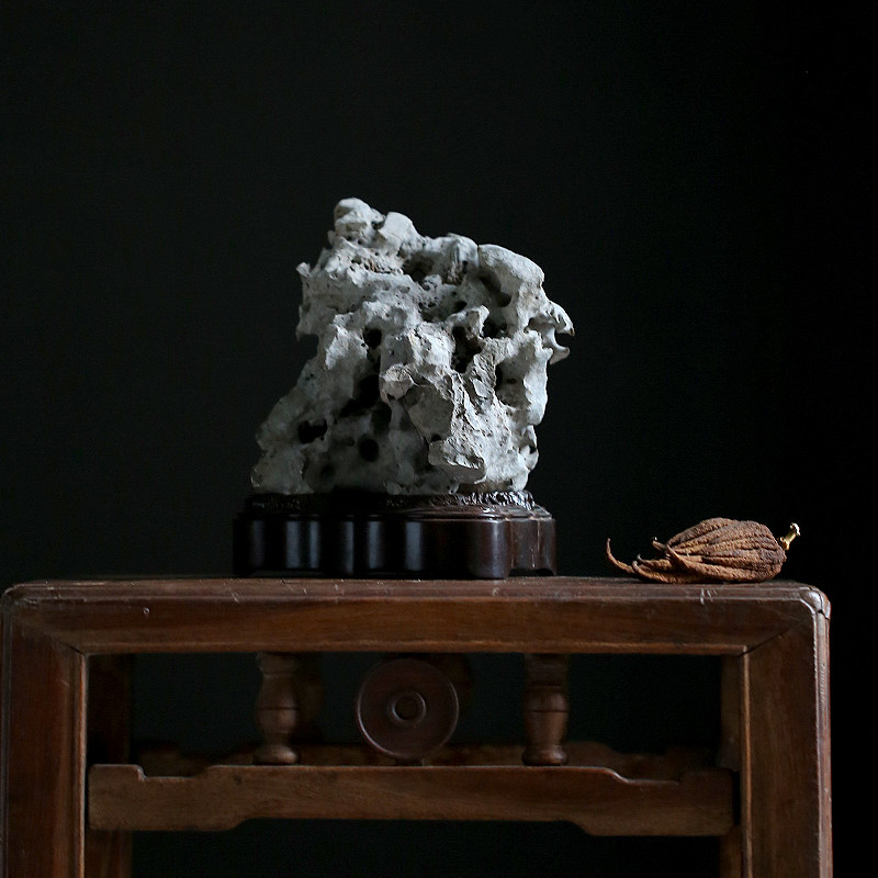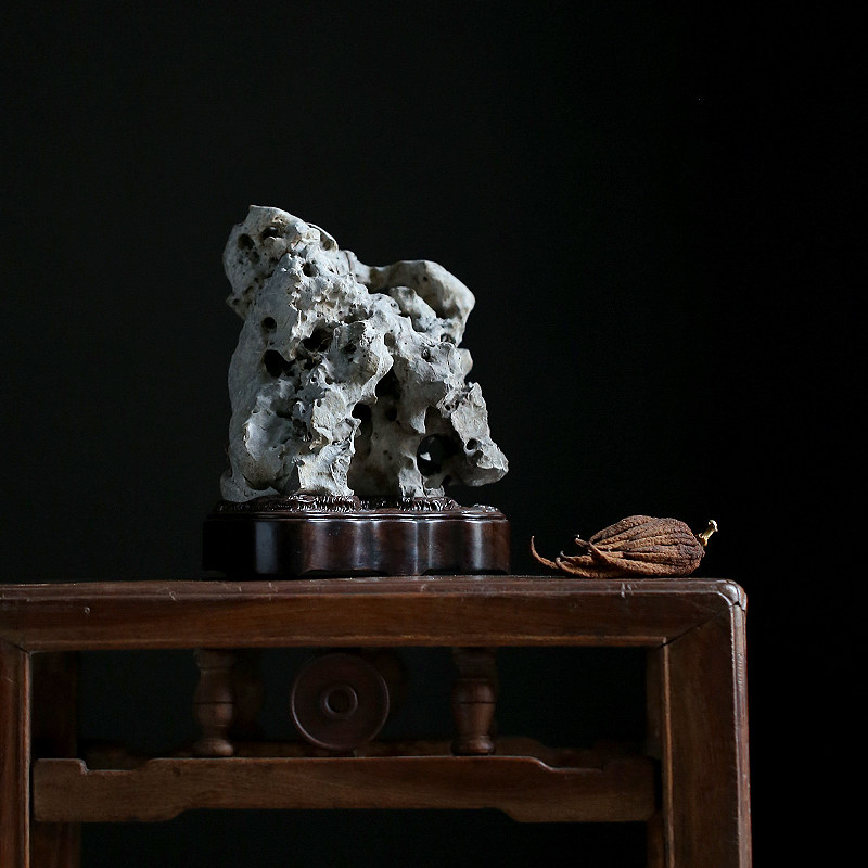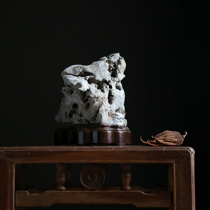 Jingchi Qing tea space study desk elegant stone natural Taihu stone appreciation stone Sugong ebony base