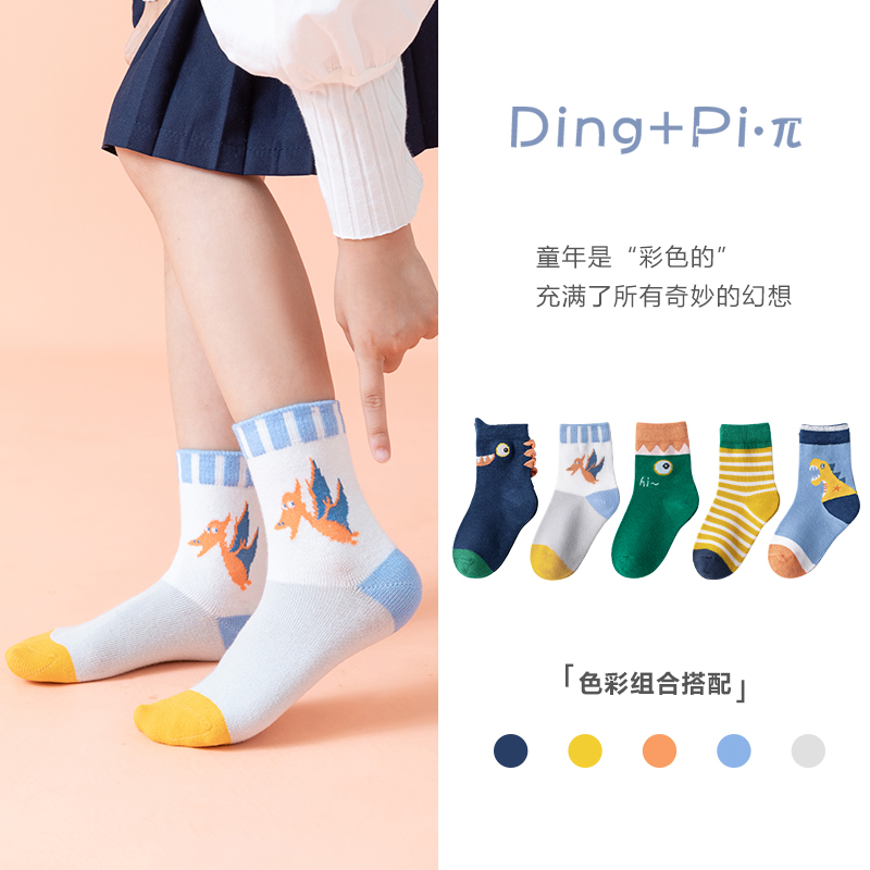 Children Socks Pure Cotton Spring Autumn Thin child Sox baby boy boy Summer thin middle cylinder Sox dinosaur cartoon cotton socks