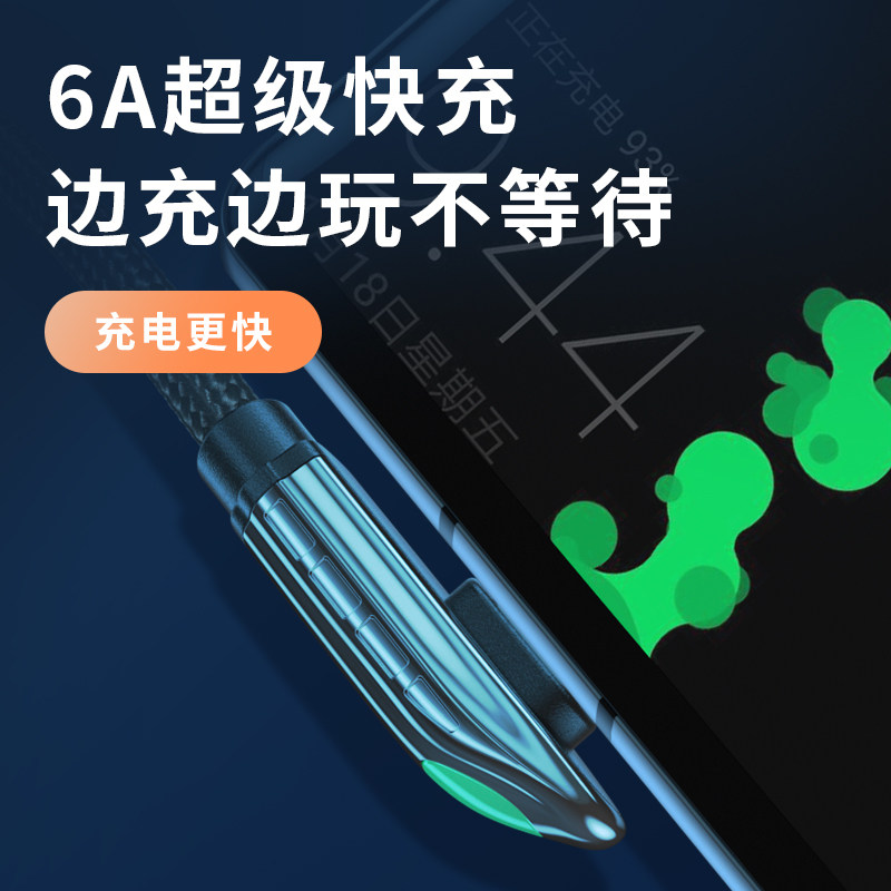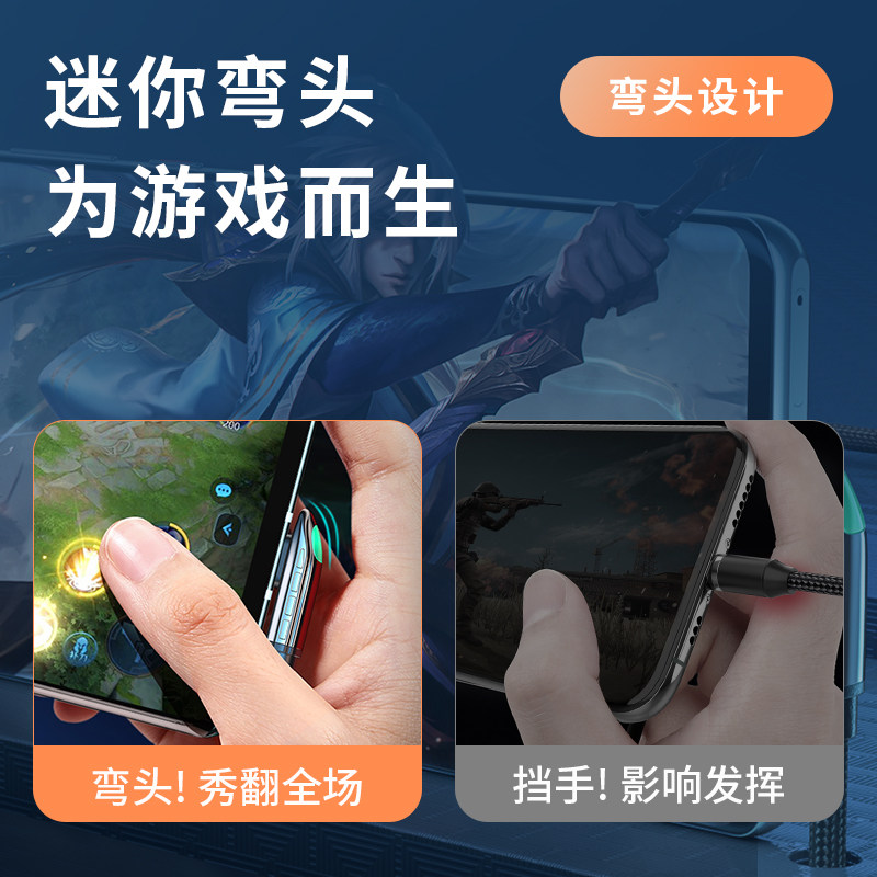 ESSAGER Yiestype-c elbow data line applicable Huawei p20p30p40 super fast charging 6A Xiaomi 10 mobile phone mate40 Honor 9 charger 5a