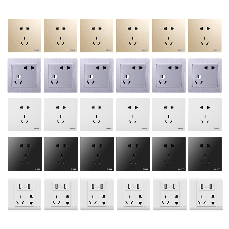 One opened three holes 16A-narrow white, one opened three holes 16A-narrow ash, one opened three holes 16A-narrow side black, one opened three holes 16A-large plate white, one opened three holes 16A-large plate gold