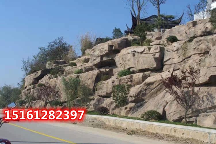 Large-scale artificial cement rockery farmhouse landscape beautiful rural renovation landscape cave fountain plastic stone landscaping