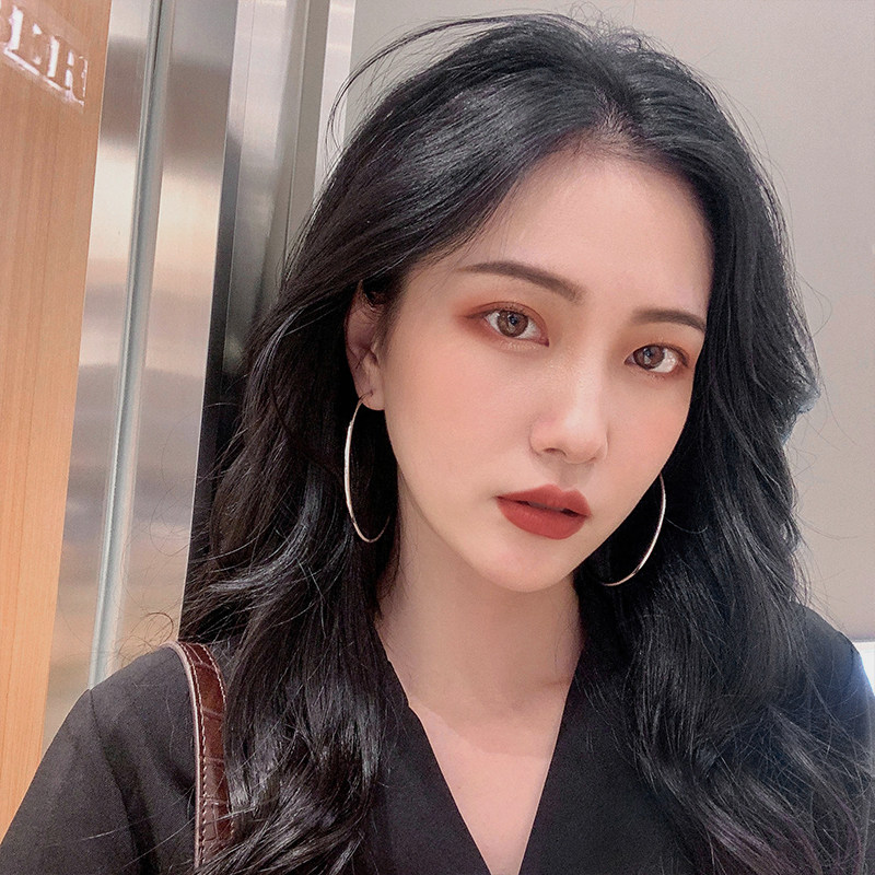 Circle big earrings summer sterling silver exaggerated ear ring allergy European and American simple temperament advanced sense Net red ear decoration tide