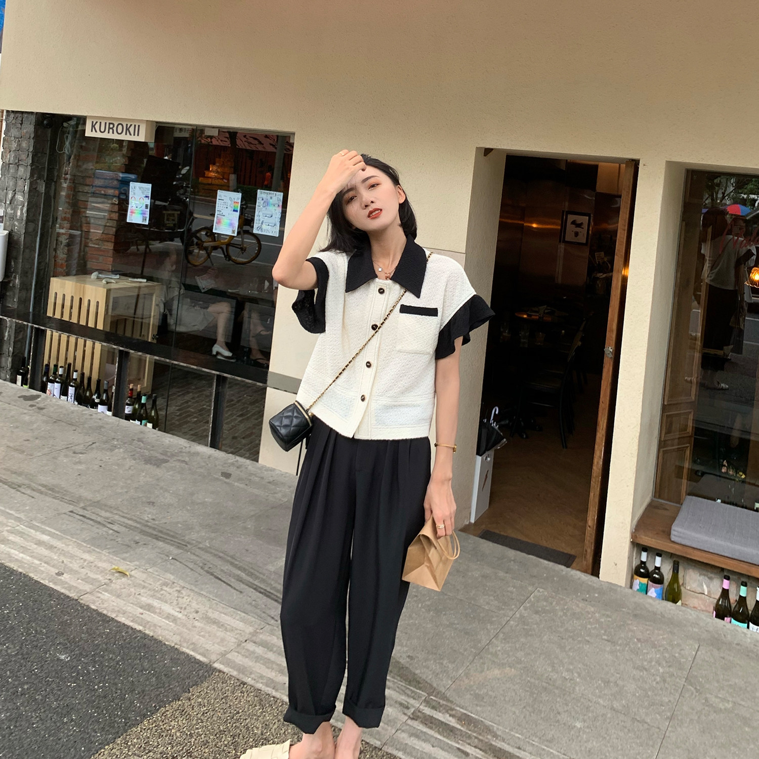 tina polo leads short sleeves t shirts summer fashion decreased temperament pie black and white coloured small fragrance tops