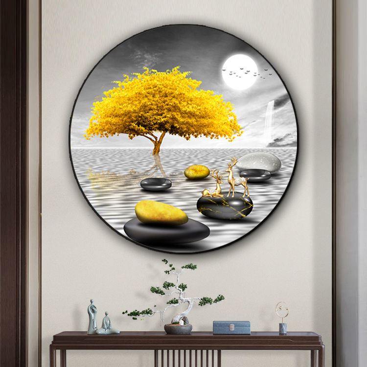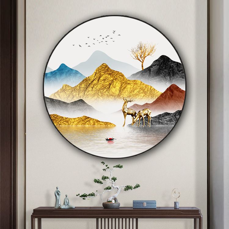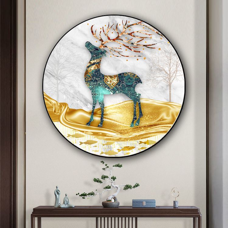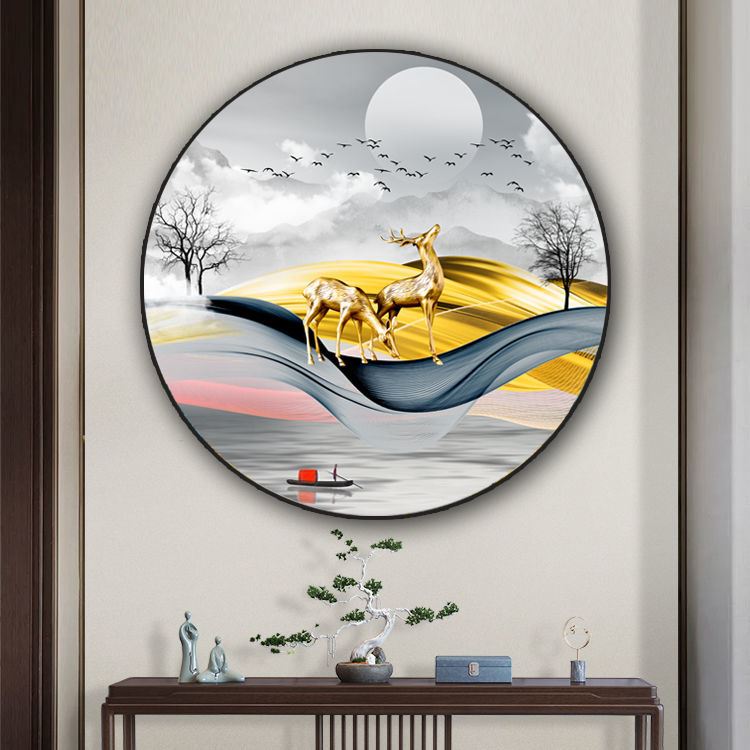 Light and luxurious round hanging painting New Chinese moose round decoration painting Xuanguan Living room Tea room Book room sofa Background fresco