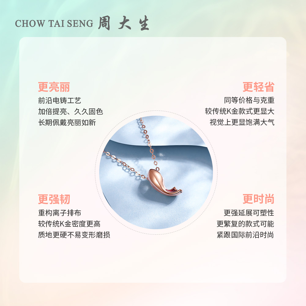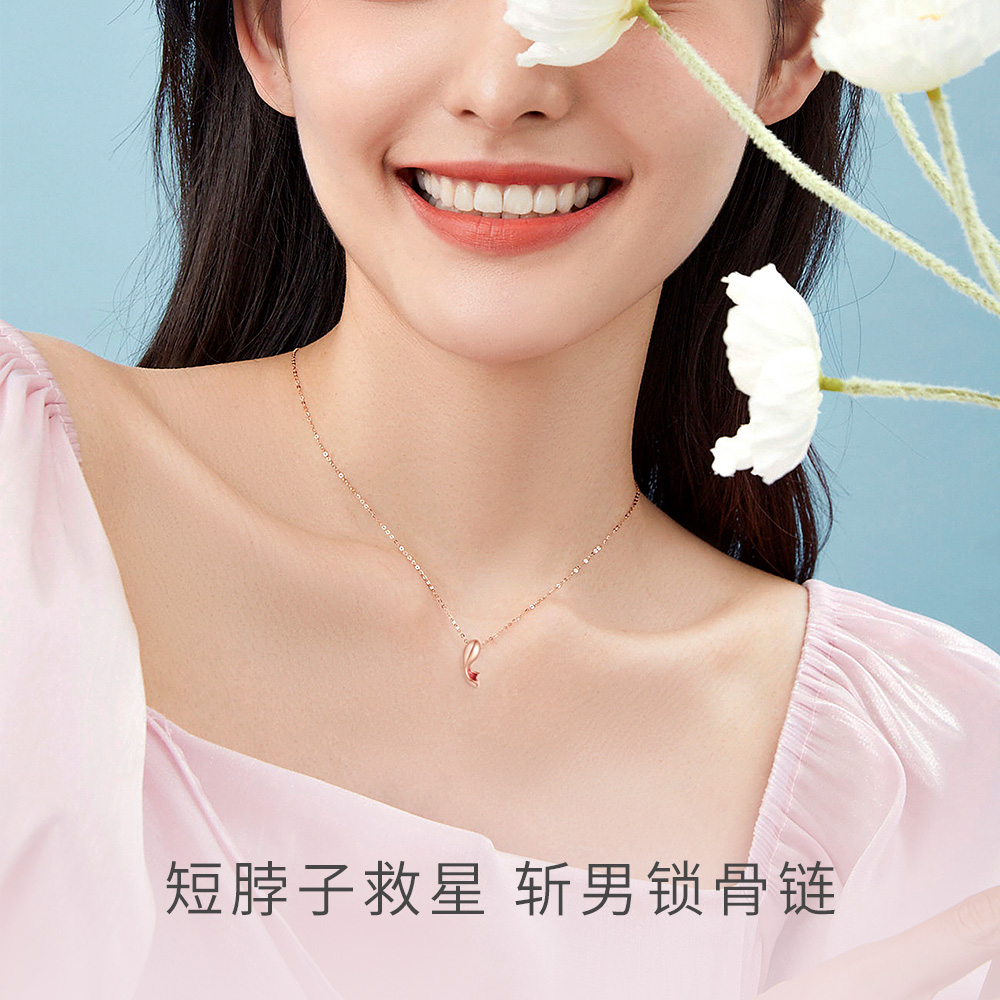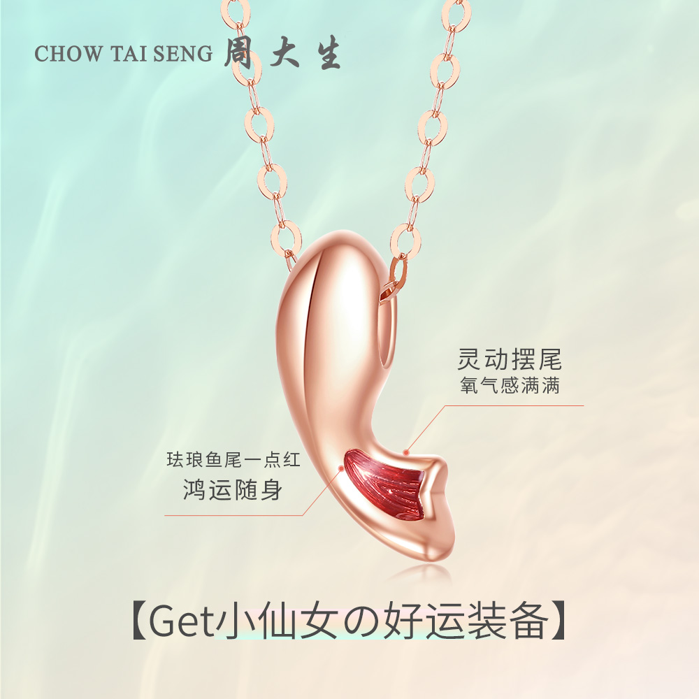 Zhou Dengsheng 4D Hard 18K gold necklace woman rose gold enamel good luck gin carp lock bone holiday gift to girlfriend-Taobao