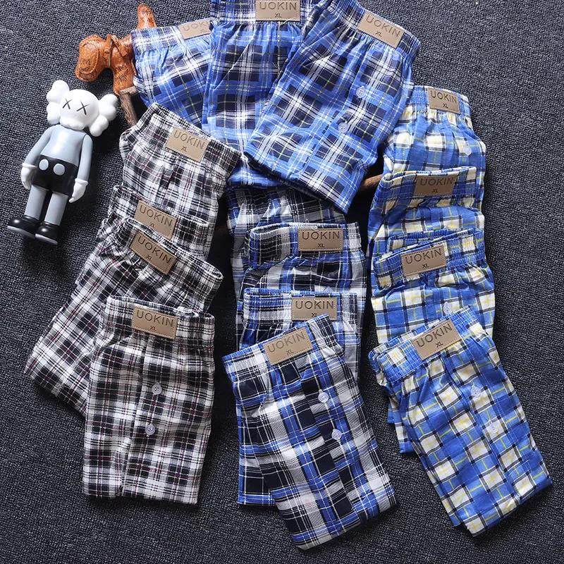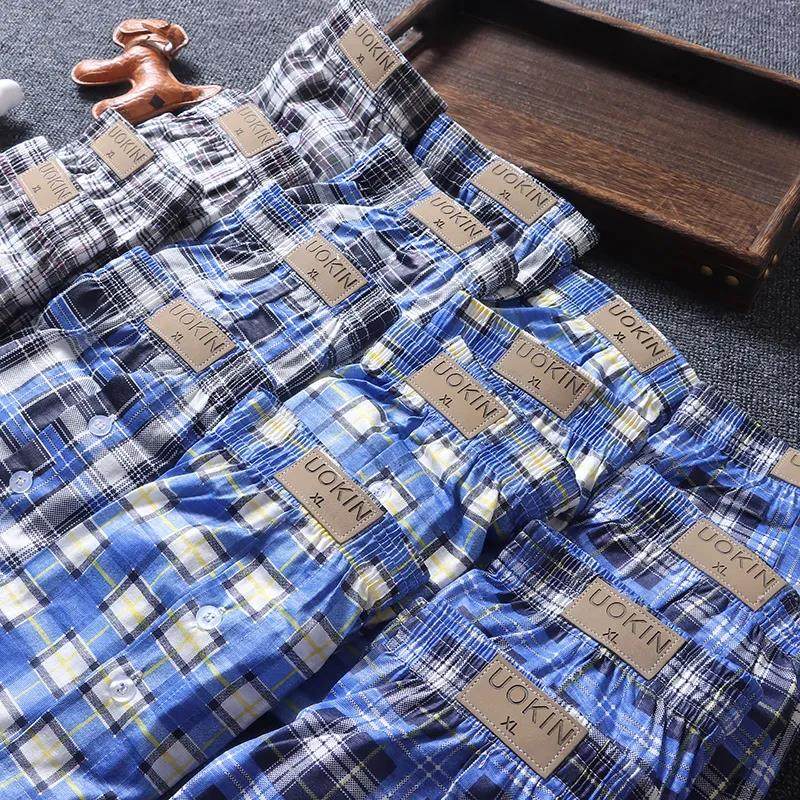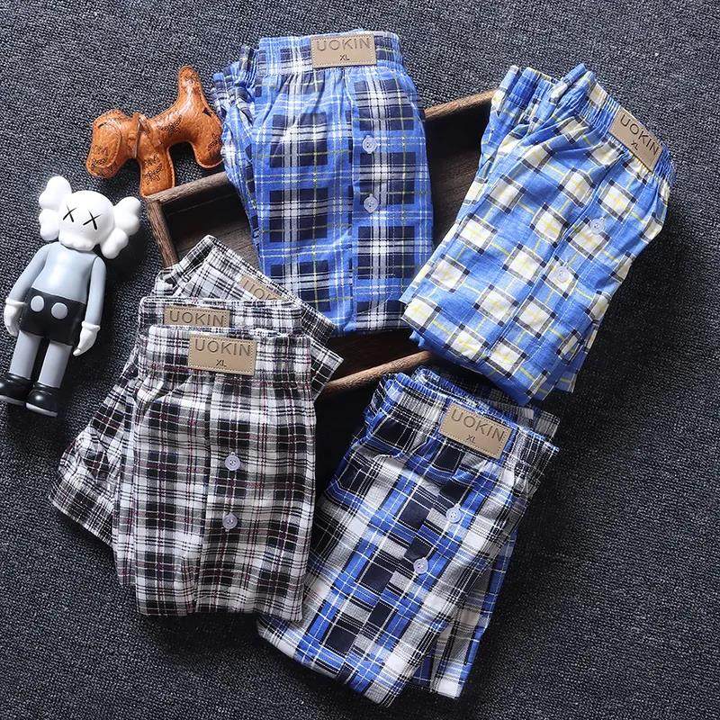 A versatile shorts day single loose home men's plaid 30% pants briefs casual four-corner pants