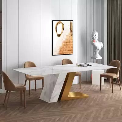 Rock plate table imported rock plate rectangular table designer villa dining room table household light luxury stone table