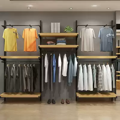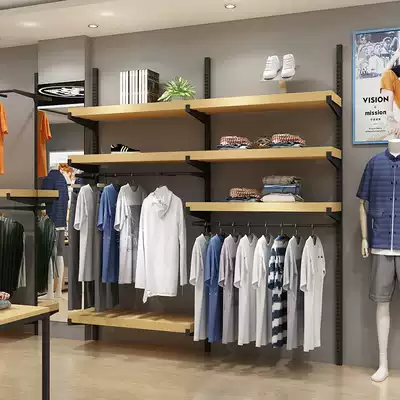 Clothing store display rack industrial style thickened laminate on the wall men's fashion brand shelf clothes shelf iron design customization