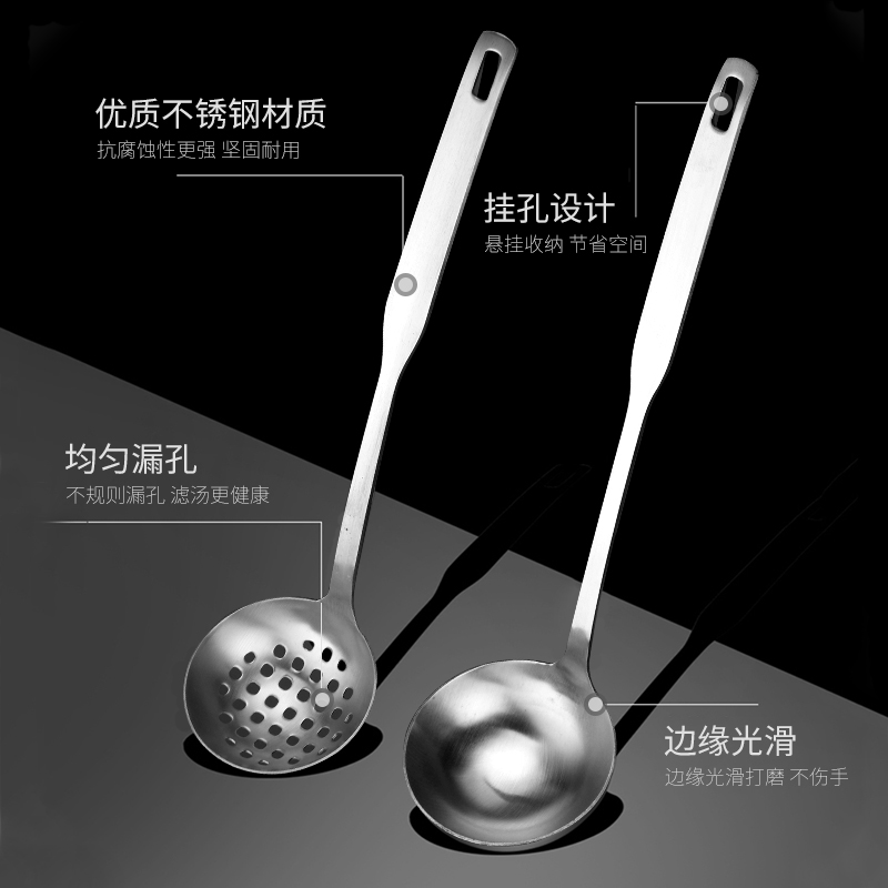 Thickened hot pot colander soup spoon stainless steel long handle large porridge porridge soup household commercial kitchen set