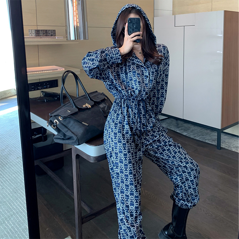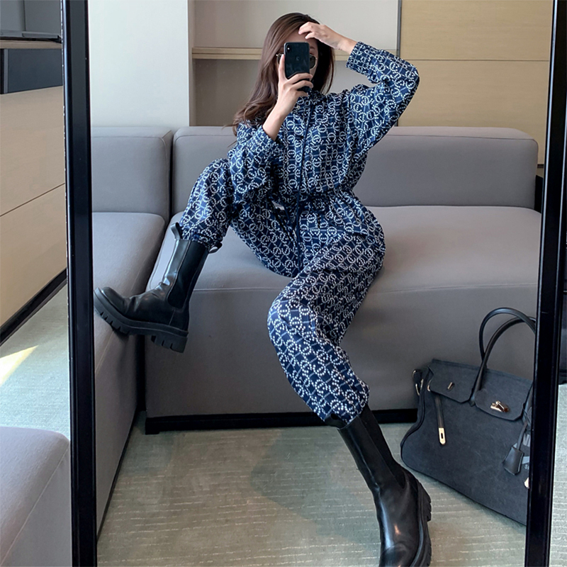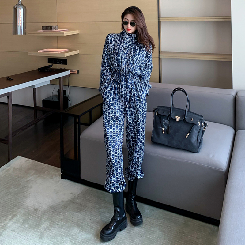 Port Wind Tooling Tandem Suit Woman Spring Autumn Fashion Retro Chic Pair Body Pants High Waist Display Slim Casual Sports Craze