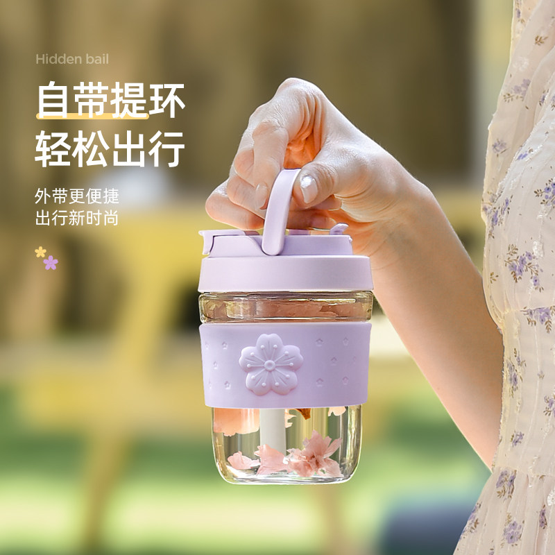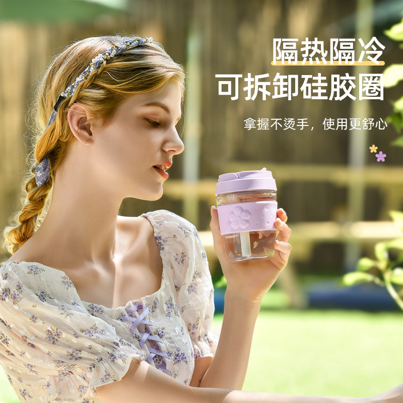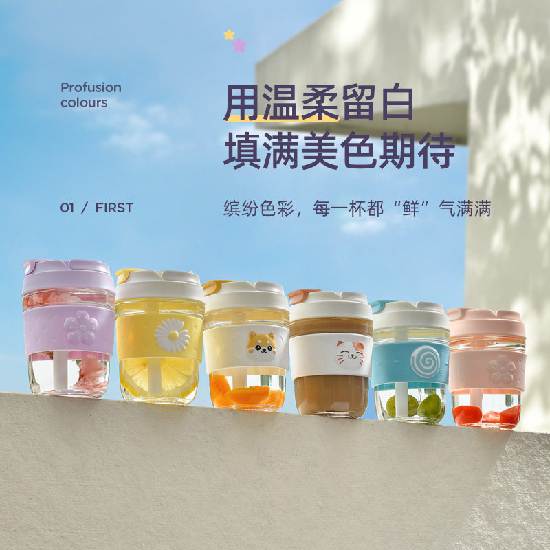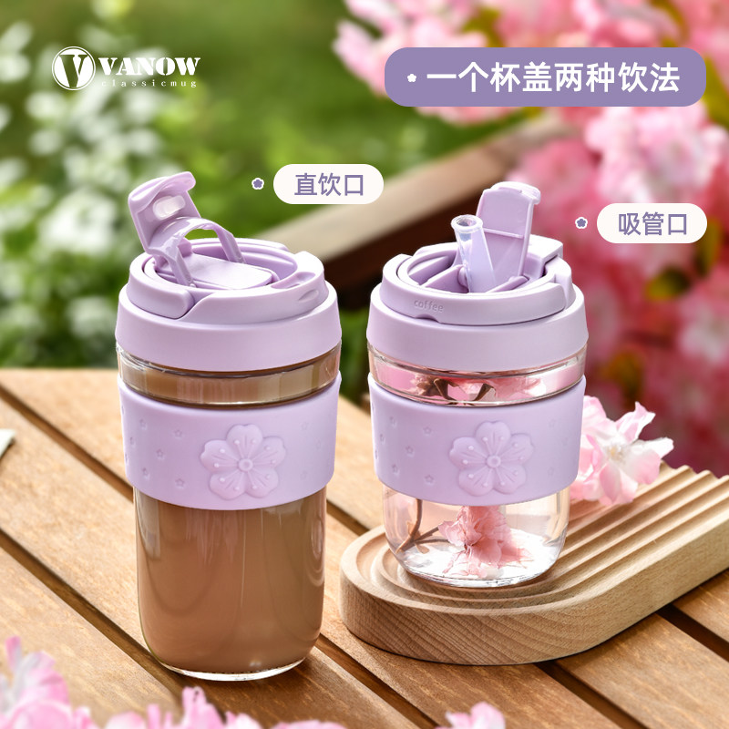 British Vanow glass water cup female summer Net red cute with straw tea portable large capacity coffee cup